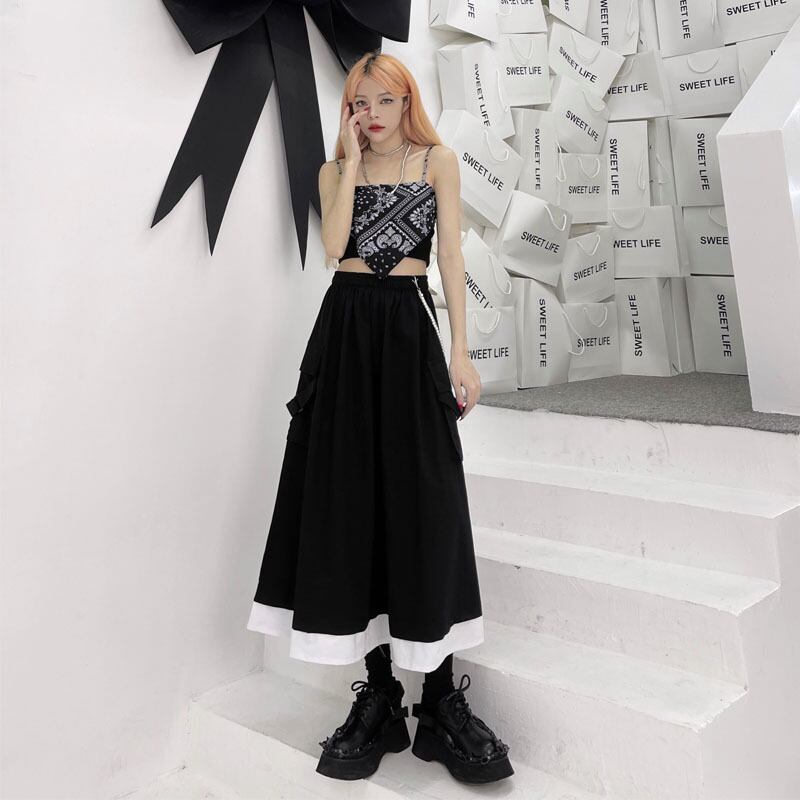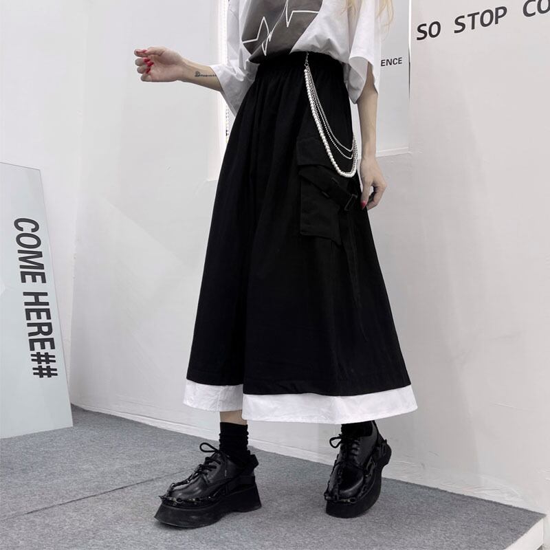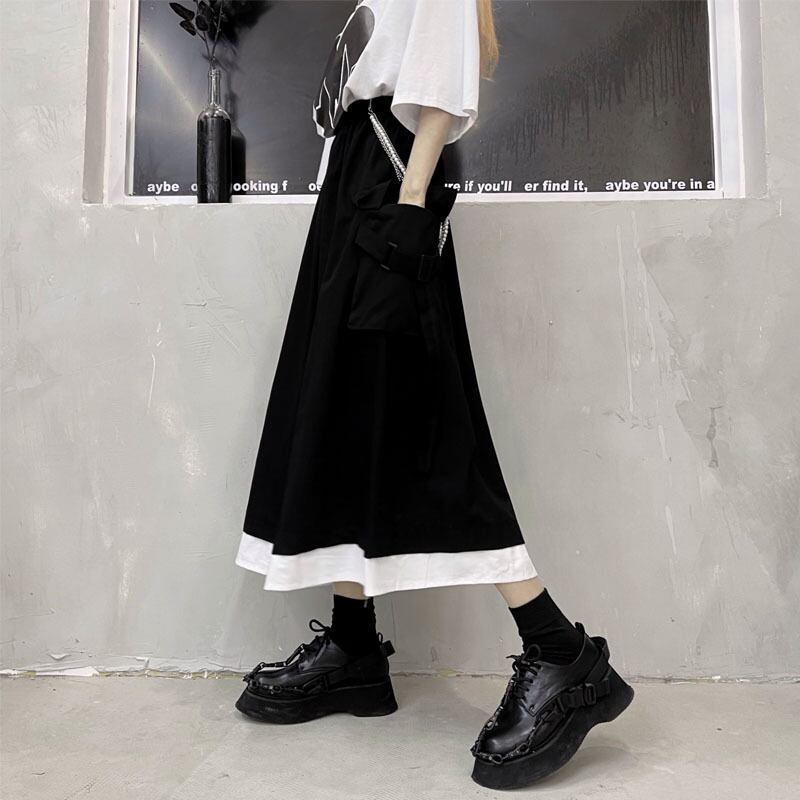 スカート レディース夏服韓国ファッショントレンドスタンダードカラーハイウェスト薄手Aライン レトロ ストリート 夏物 ステッチ スタイル ウエスト ミドル丈 Studios40464803990 | pLegLad Studios