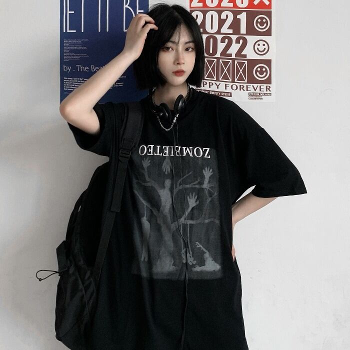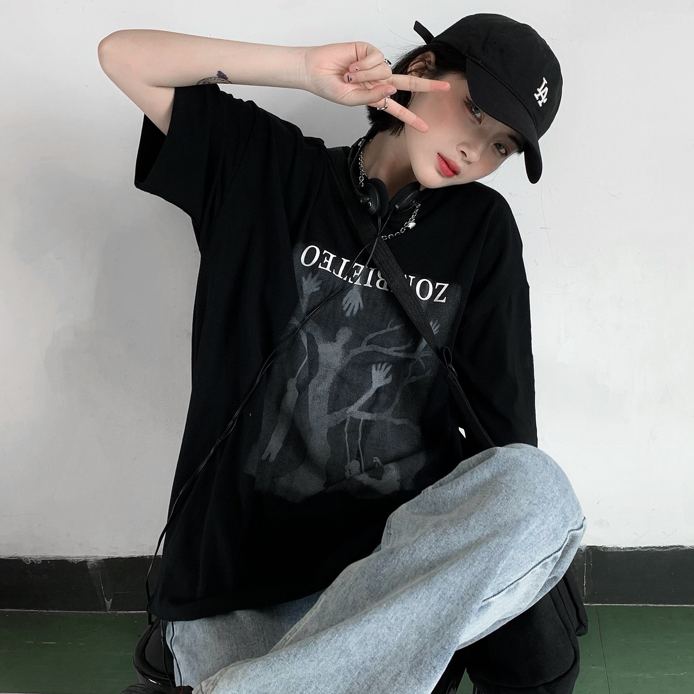 夏服韓国ファッショントレンドスタイルダークプリントラウンドネックルーズカジュアルTシャツメンズレディース ストリート 原宿 夏物 Oネック Studios45187339699 | pLegLad Studios