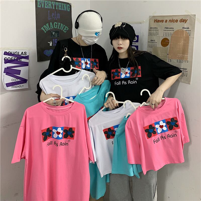 ショートブラウス レディース夏服韓国ファッショントレンド刺繍Flowerデザイン プリントルーズラウンドネック半袖スリーブTシャツ ハーフスリーブ 夏物 Oネック フラワーデザイン スタイル Studios49230881579 | pLegLad Studios