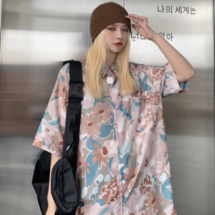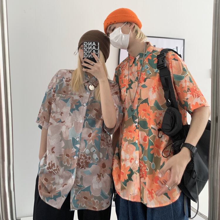 ワンピースフローラルシャツ 夏服韓国ファッショントレンドスタイルスタンダードカジュアルルーズメンズレディース レトロ 夏物 花柄 Studios2375770780 | pLegLad Studios