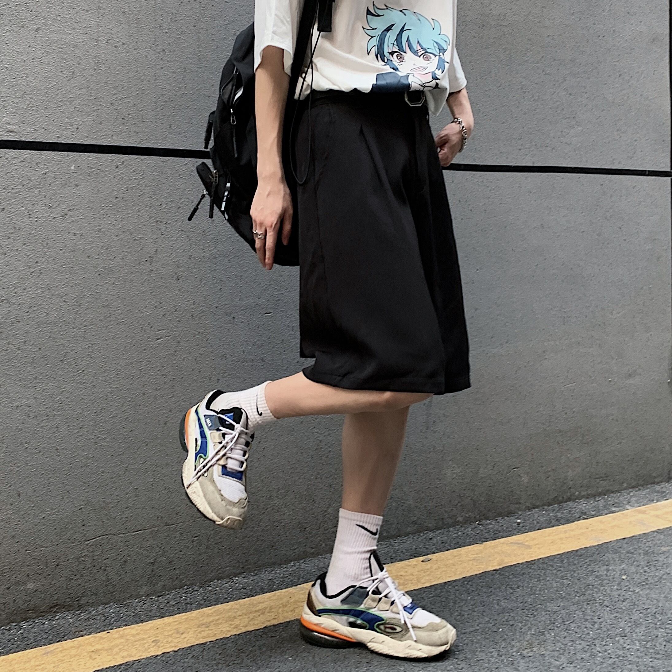 ショーツ レディース夏服韓国ファッショントレンドスタイルブラックルーズハイウェストウェストワイドレッグパンツ 夏物 ワイドパンツ ウエスト Studios69966464816 | pLegLad Studios