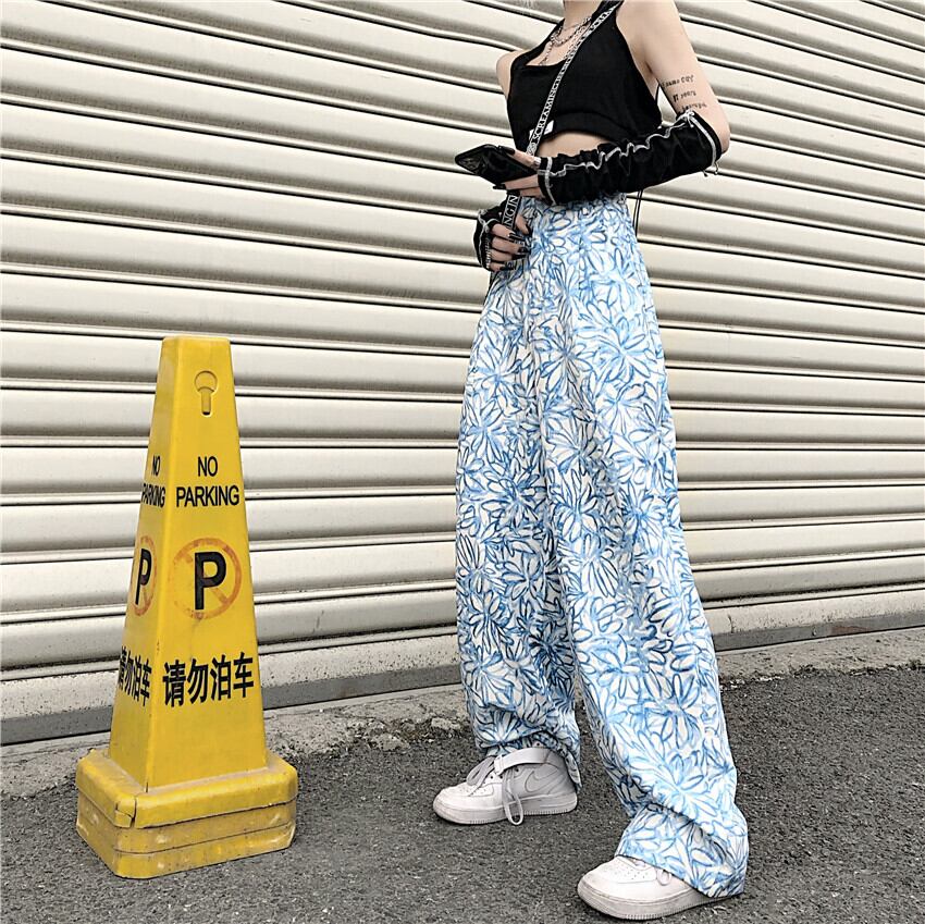 ワイドレッグカジュアルパンツ レディース夏服韓国ファッショントレンドスタンダードフローラルルーズ薄手ハイウェストウェスト レトロ 夏物 花柄 ワイドパンツ スタイル ウエスト Studios63682966151 | pLegLad Studios
