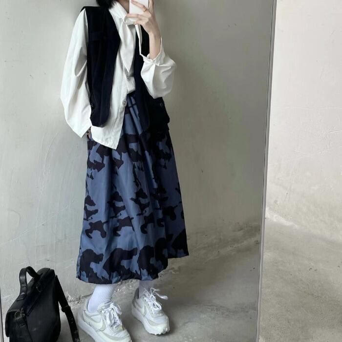 スカート レディース夏服韓国ファッショントレンドスタンダードAラインハイウェストウェスト薄手 レトロ ストリート 夏物 スタイル ウエスト ミドル丈 Studios44790302403 | pLegLad Studios