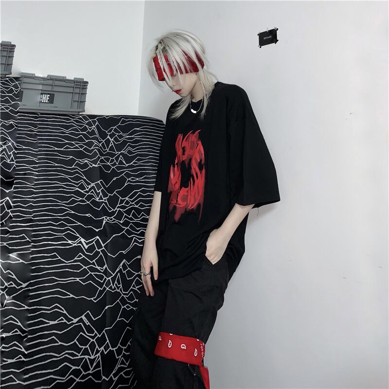 夏服韓国ファッショントレンドスタイルダークプリントカジュアルルーズラウンドネック半袖スリーブTシャツレディース ショート ハーフスリーブ 原宿 夏物 Oネック Studios5905400547 | pLegLad Studios