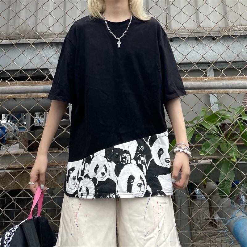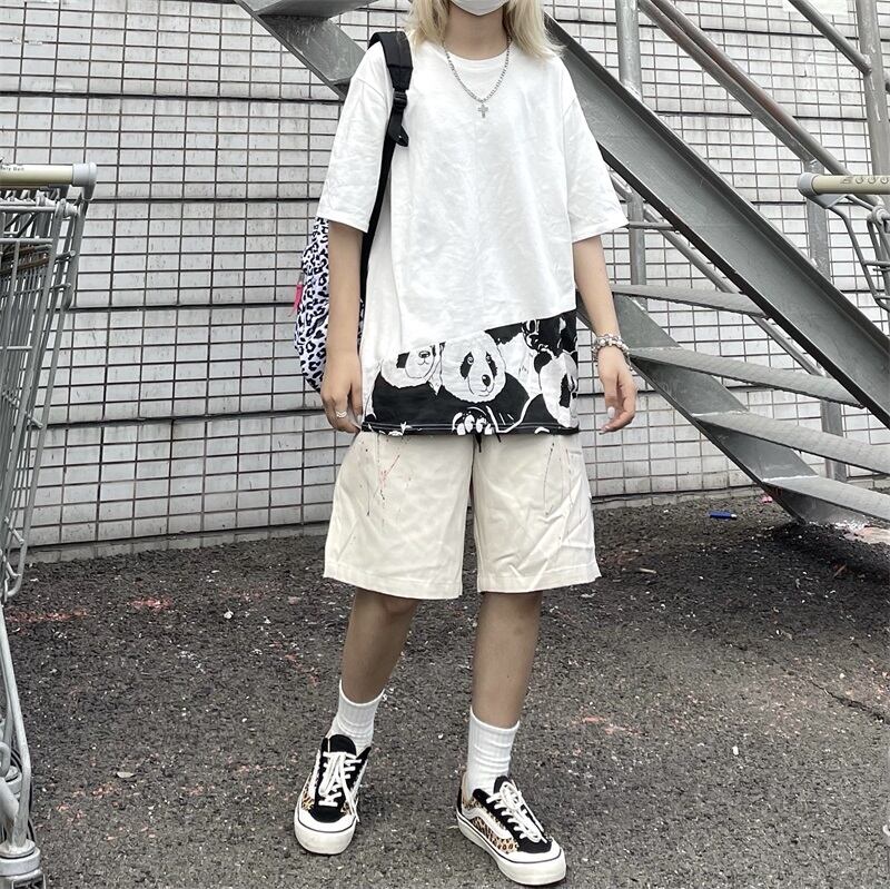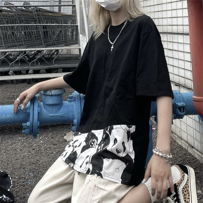 夏服韓国ファッショントレンドスタイルプリント柄カジュアルラウンドネックルーズ半袖スリーブTシャツレディース ショート ハーフスリーブ 原宿 夏物 Oネック ステッチ Studios20415743460 | pLegLad Studios