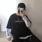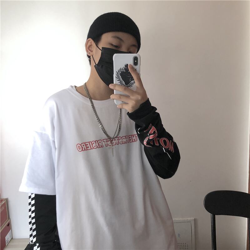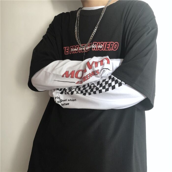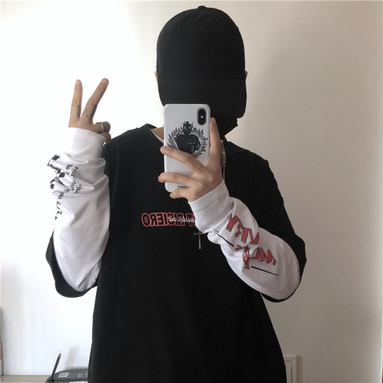 スプリング夏服韓国ファッショントレンドスタンダードプリントトップス ルーズメンズレディース ロング レトロ シャツ 春物 夏物 Tシャツ スタイル 長袖 Studios36979912102 | pLegLad Studios