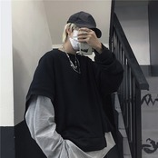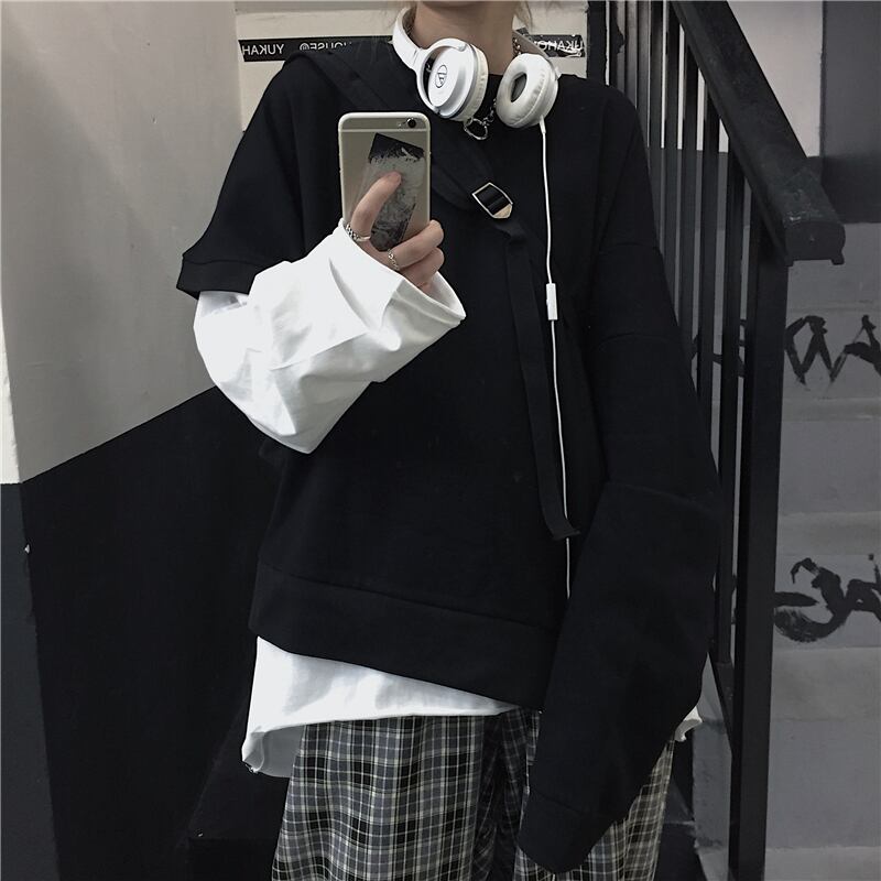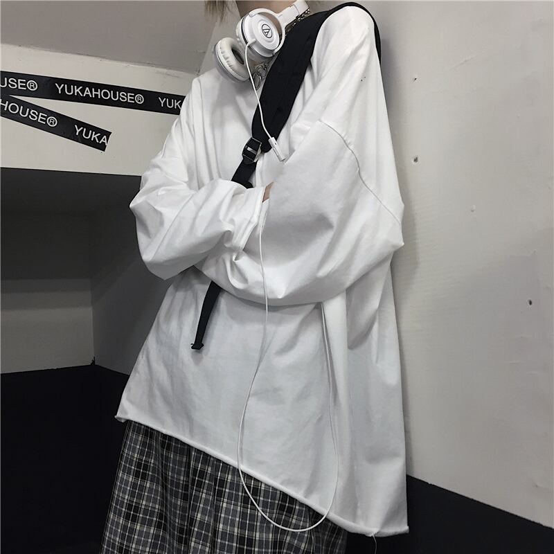 秋物韓国ファッショントレンドソリッド カラーゆったりTシャツトップス ラウンドネックセーター メンズレディース ロング オータム Oネック ソリッドカラー ステッチ 長袖 Studios94641899401 | pLegLad Studios