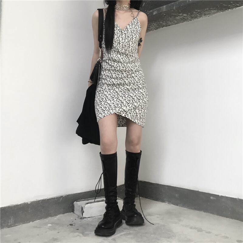 ワンピースレディース夏服韓国ファッショントレンドスタイルスタンダードレオパードプリント柄ウェストメタルスカート レトロ 夏物 ウエスト Studios1496886416 | pLegLad Studios