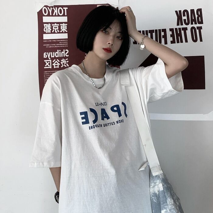 夏服韓国ファッショントレンドスタイルスタンダードプリントラウンドネックルーズカジュアルTシャツレディース レトロ ストリート 原宿 夏物 Oネック Studios26918411739 | pLegLad Studios