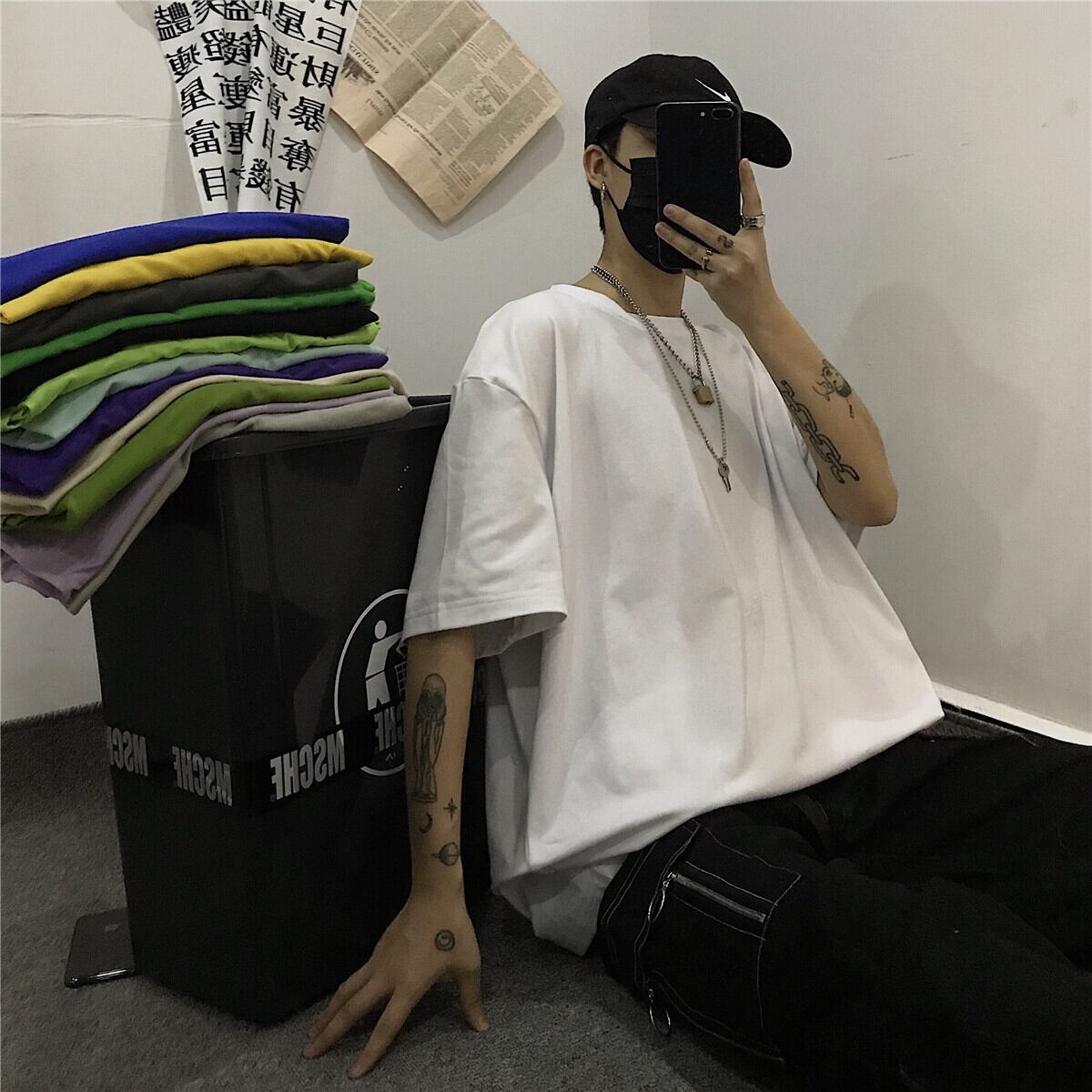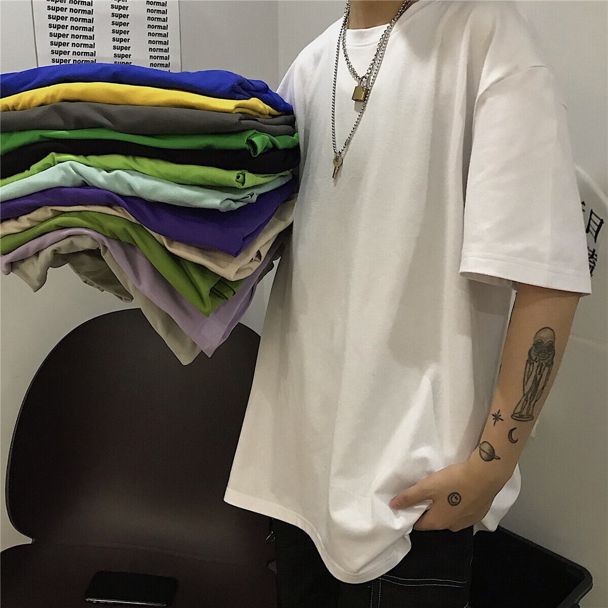 夏服韓国ファッショントレンドスタイルソリッド カラーベーシックゆったりシャツ ルーズTシャツレディース 原宿 夏物 ソリッドカラー Studios98809516045 | pLegLad Studios