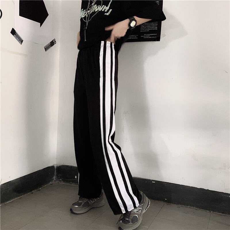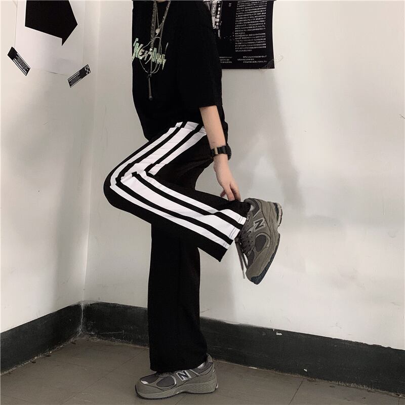 カジュアルパンツ レディース夏服韓国ファッショントレンドスタンダードストライプブラックストレッチウェストルーズ薄手 レトロ エラスティック 伸縮 夏物 スタイル ウエスト Studios98474395433 | pLegLad Studios