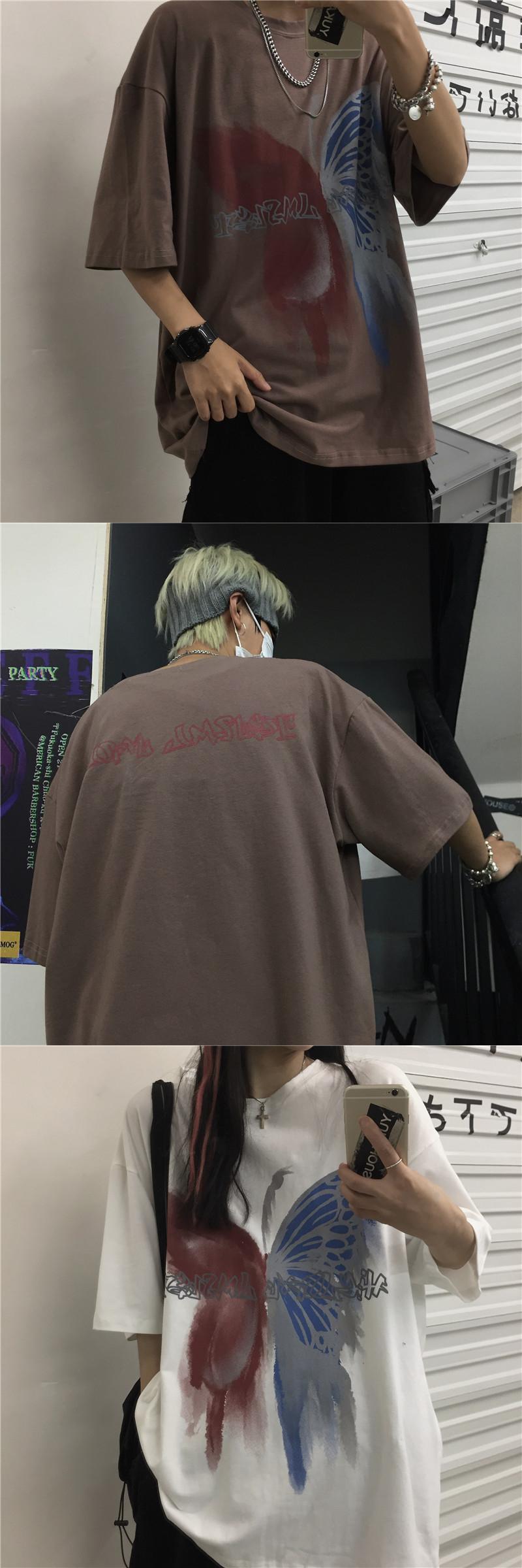 夏服韓国ファッショントレンドスタンダードButterflyデザイン プリントルーズTシャツメンズレディース レトロ 夏物 スタイル Studios74553460172 | pLegLad Studios