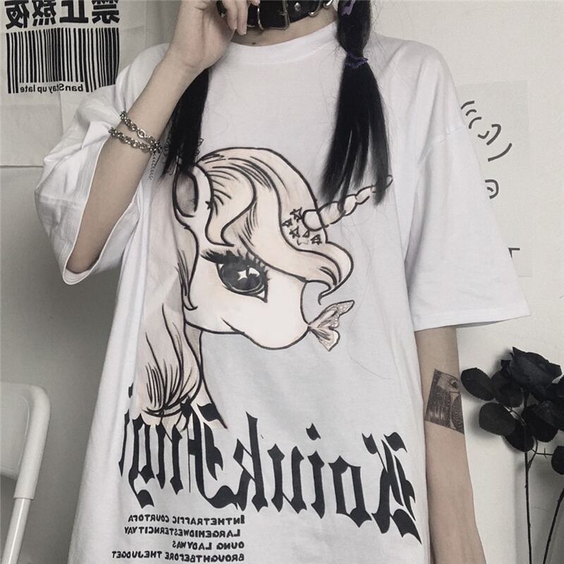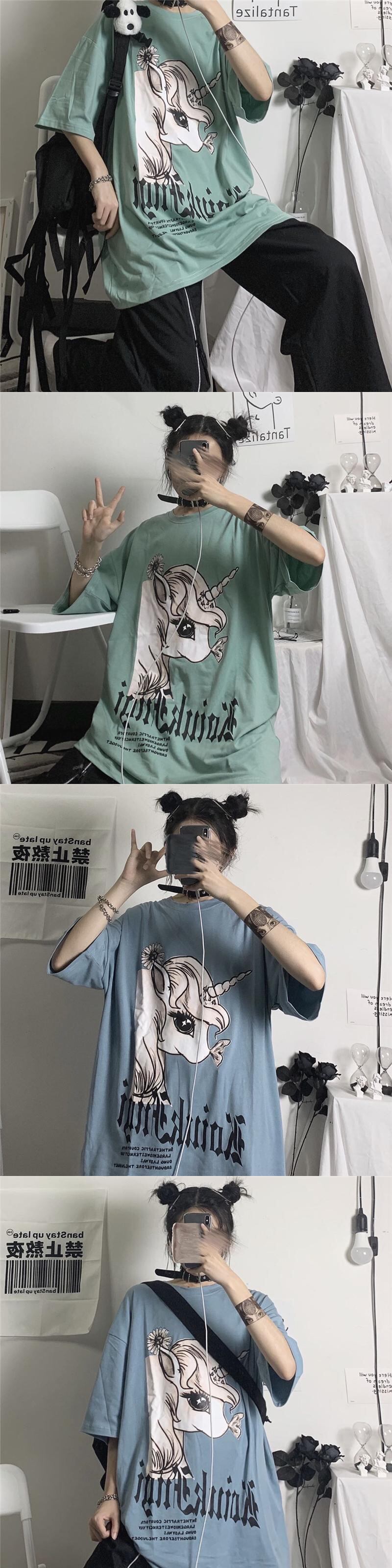 夏服韓国ファッショントレンドスタイルプリントルーズラウンドネック半袖スリーブTシャツレディース ショート ハーフスリーブ 原宿 夏物 Oネック Studios23101481090 | pLegLad Studios