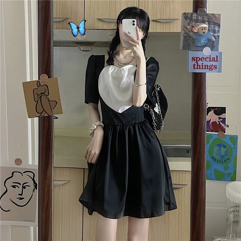 ワンピースレディース夏服韓国ファッショントレンドスタンダードハイウェストウェスト薄手Aラインスカート ブラック レトロ 夏物 ステッチ スタイル ウエスト Studios41012816053 | pLegLad Studios