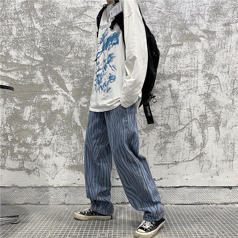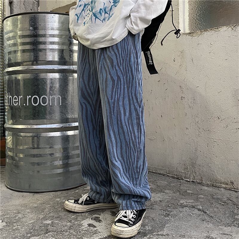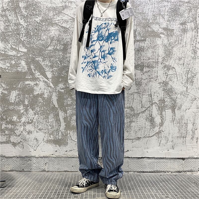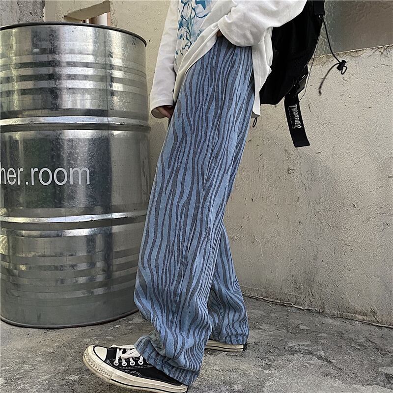 ジーンズ レディース夏服韓国ファッショントレンドプリント柄ルーズウェストワイドレッグパンツ ストリート 夏物 ワイドパンツ ウエスト Studios81777820361 | pLegLad Studios