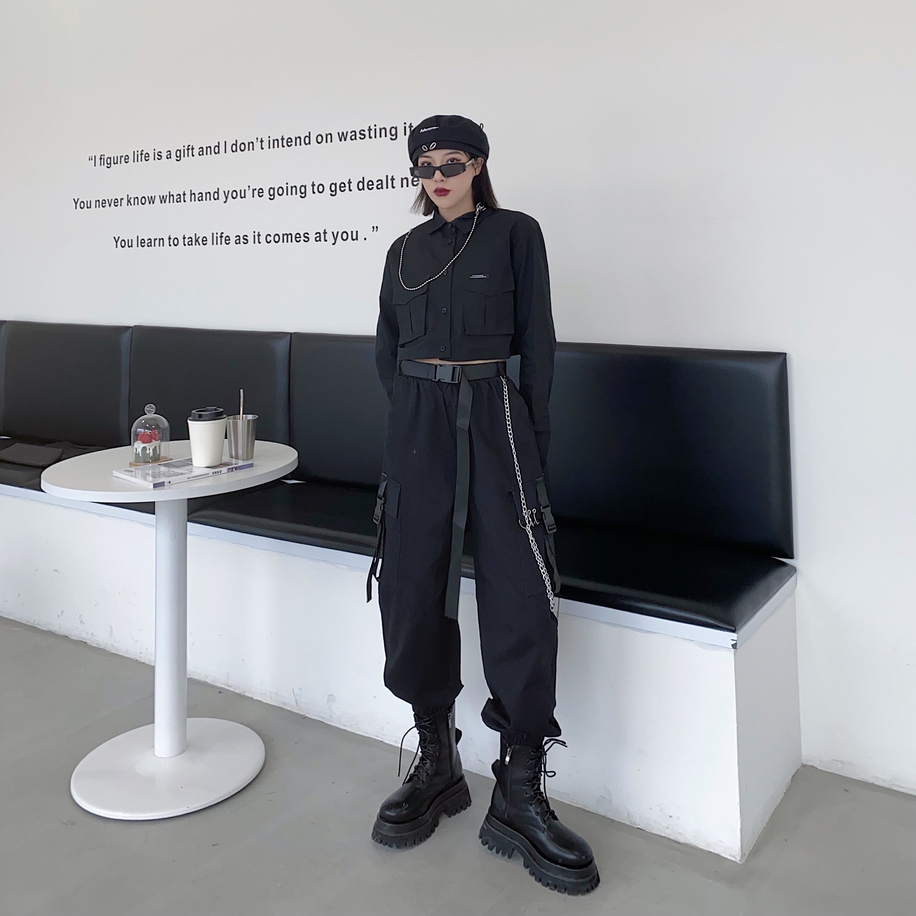 ブラックパンツレディース夏服韓国ファッショントレンドチェーン ハイウェストウェスト薄手ルーズカジュアルパンツ 夏物 スタイル ウエスト Studios55246458211 | pLegLad Studios