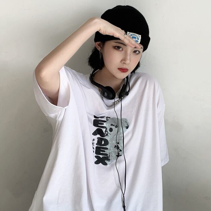 夏服韓国ファッショントレンドスタイルプリント柄ルーズラウンドネック半袖スリーブTシャツレディース ショート ハーフスリーブ ストリート 原宿 夏物 Oネック Studios80963942609 | pLegLad Studios