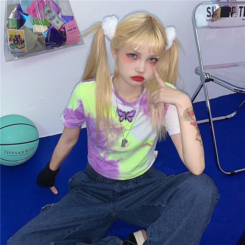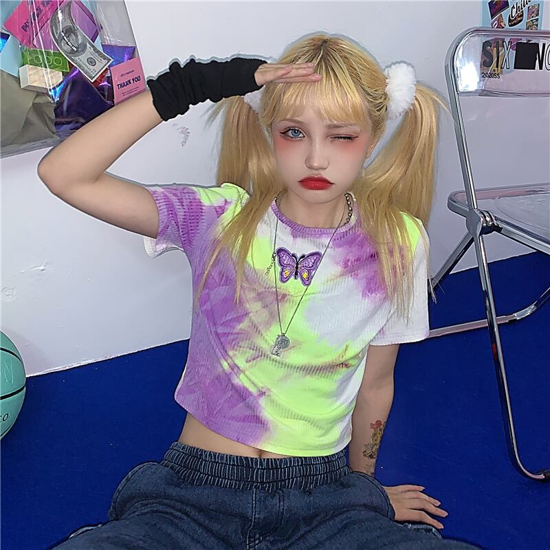 ショートトップス レディース夏服韓国ファッショントレンドスタンダードButterflyデザイン Tシャツ レトロ 夏物 スタイル Studios90208542220 | pLegLad Studios