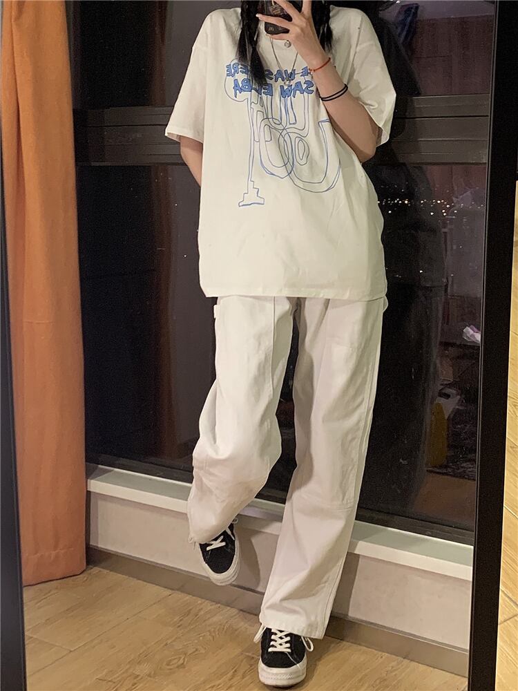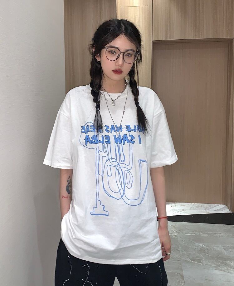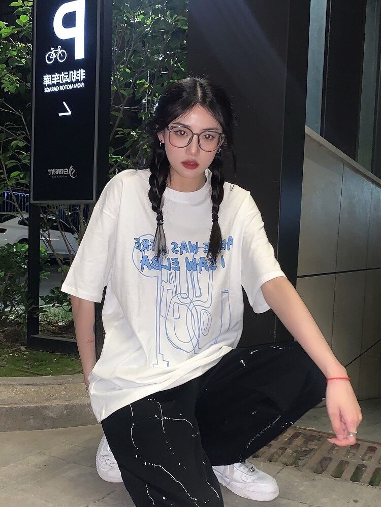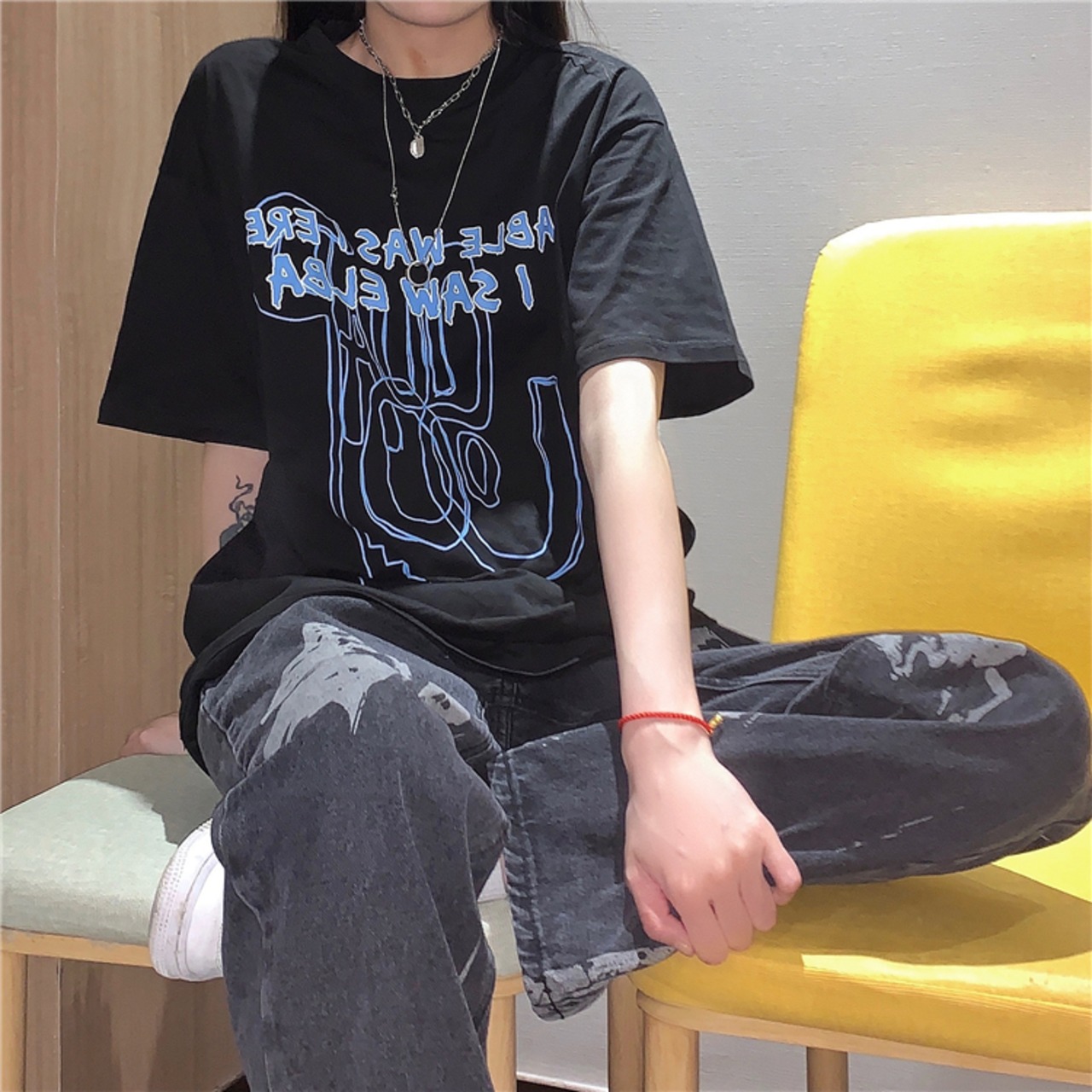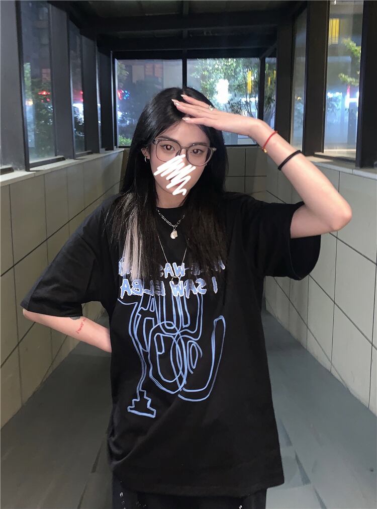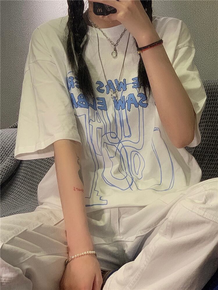Tシャツレディース夏服韓国ファッショントレンドスタンダードラインプリントルーズラウンドネックトップス レトロ 夏物 Oネック スタイル Studios64052949838 | pLegLad Studios