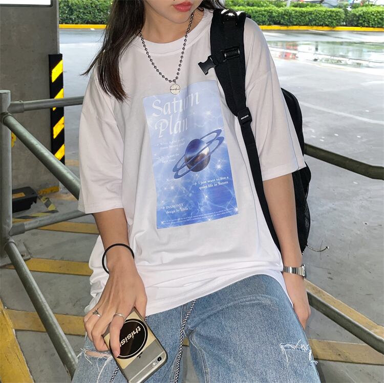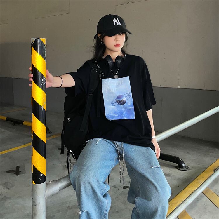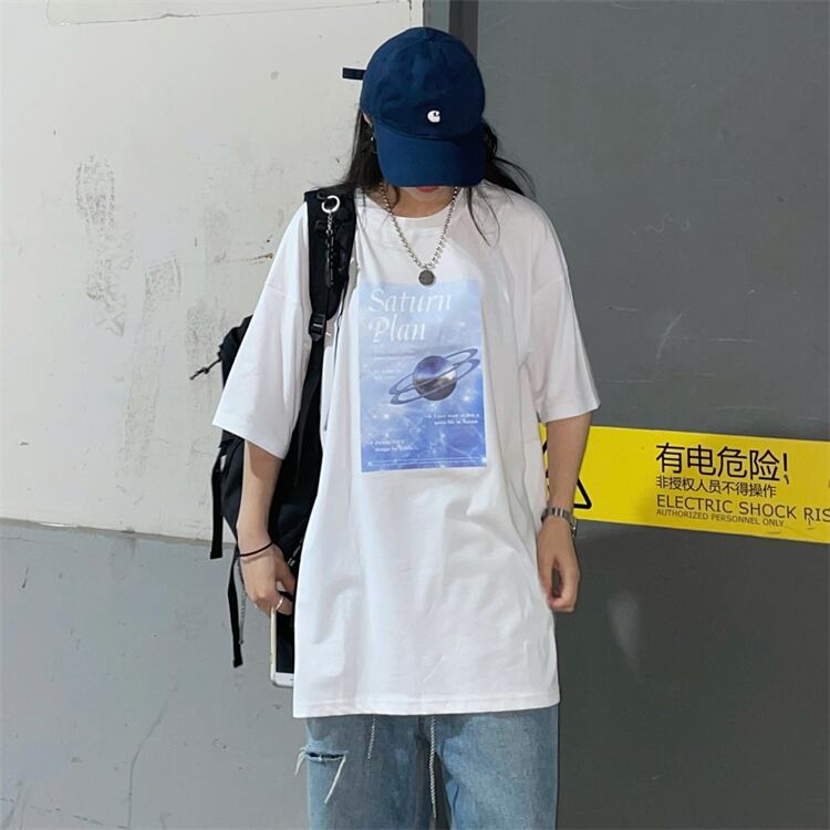 夏服韓国ファッショントレンドスタイルスタンダードプリントカジュアルルーズTシャツメンズレディース レトロ ストリート 原宿 夏物 Studios47232770464 | pLegLad Studios
