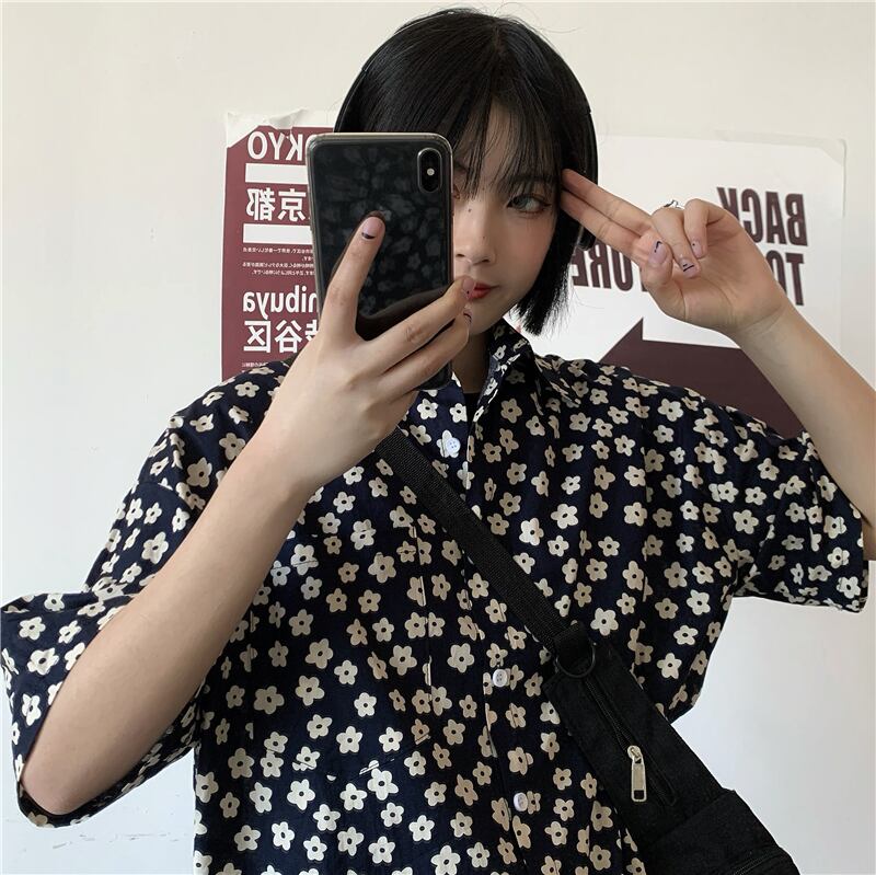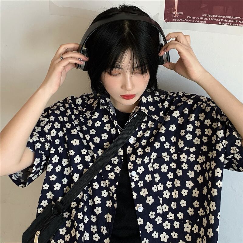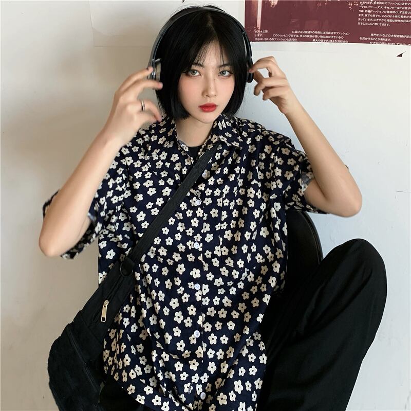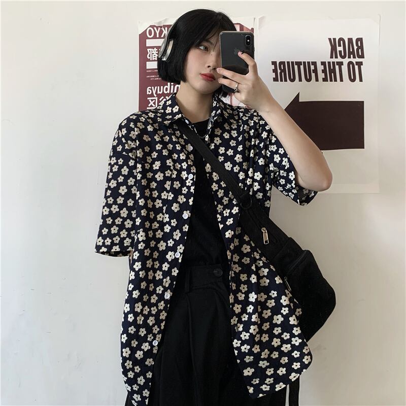 スタンダードシャツ レディース夏服韓国ファッショントレンドルーズカジュアル レトロ ストリート 夏物 フラワーデザイン スタイル Studios77088351670 | pLegLad Studios