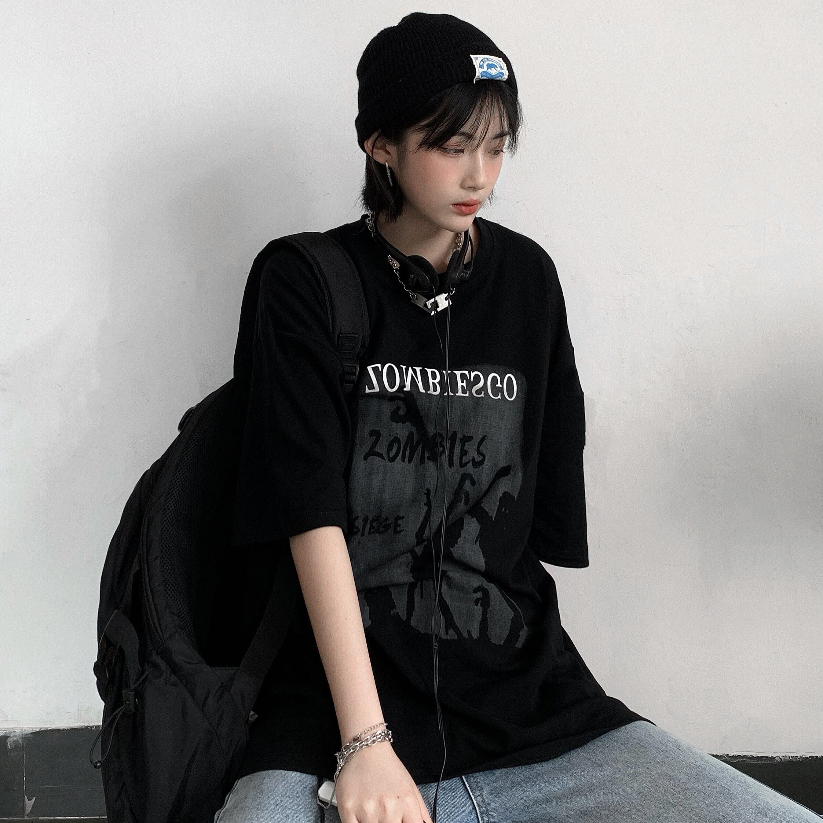 夏服韓国ファッショントレンドスタイルダークプリントカジュアルラウンドネックルーズTシャツレディース ストリート 原宿 夏物 Oネック Studios93133666170 | pLegLad Studios
