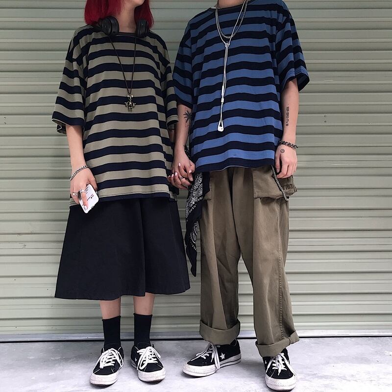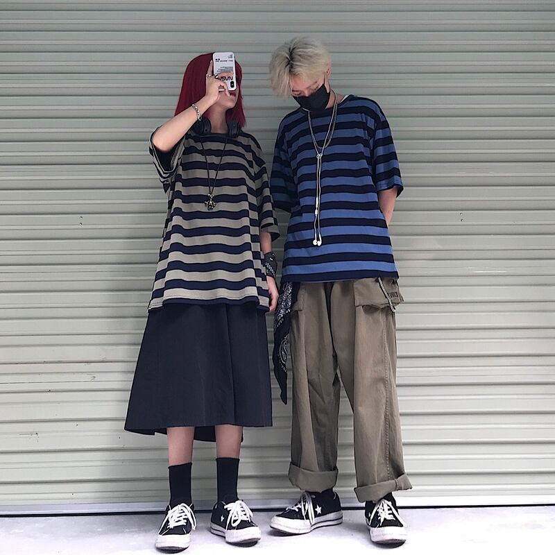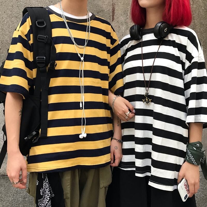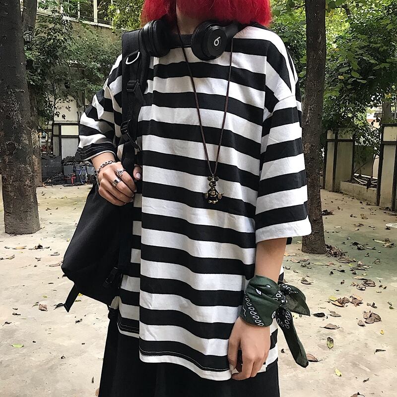 夏服韓国ファッショントレンドスタイルスタンダードカラーストライプカジュアルラウンドネックルーズTシャツレディース レトロ 原宿 夏物 Oネック Studios85026875888 | pLegLad Studios