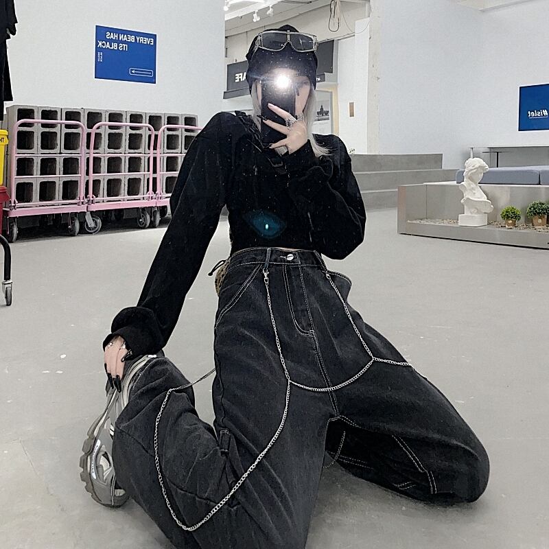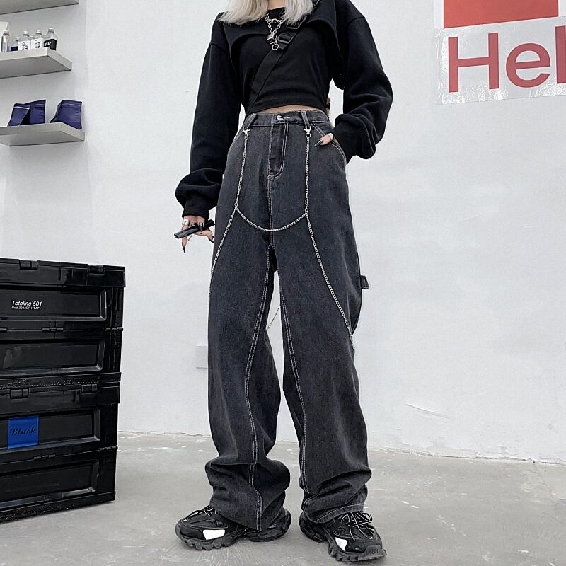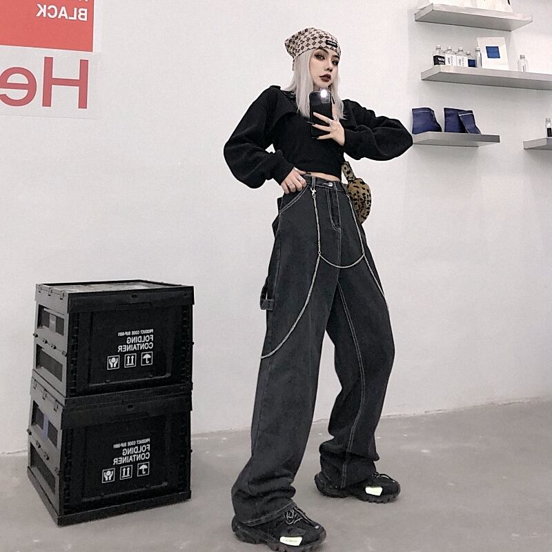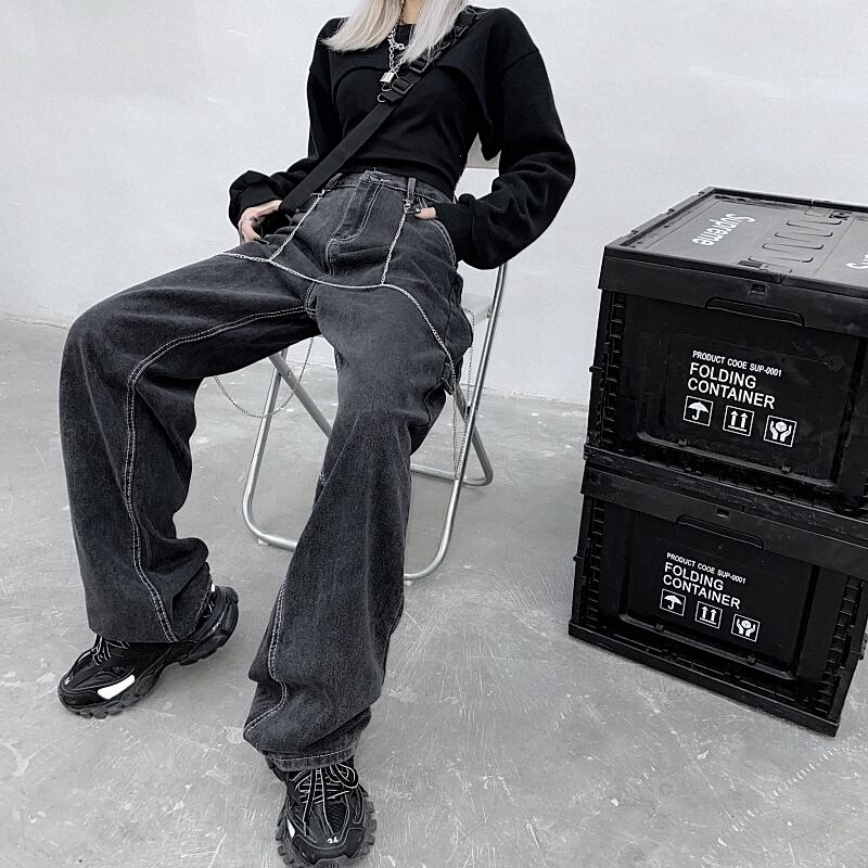 スタンダードジーンズ レディース韓国ファッショントレンドブラックグレーハイウェストウェストルーズ薄手パンツ レトロ スタイル ウエスト Studios20074789779 | pLegLad Studios
