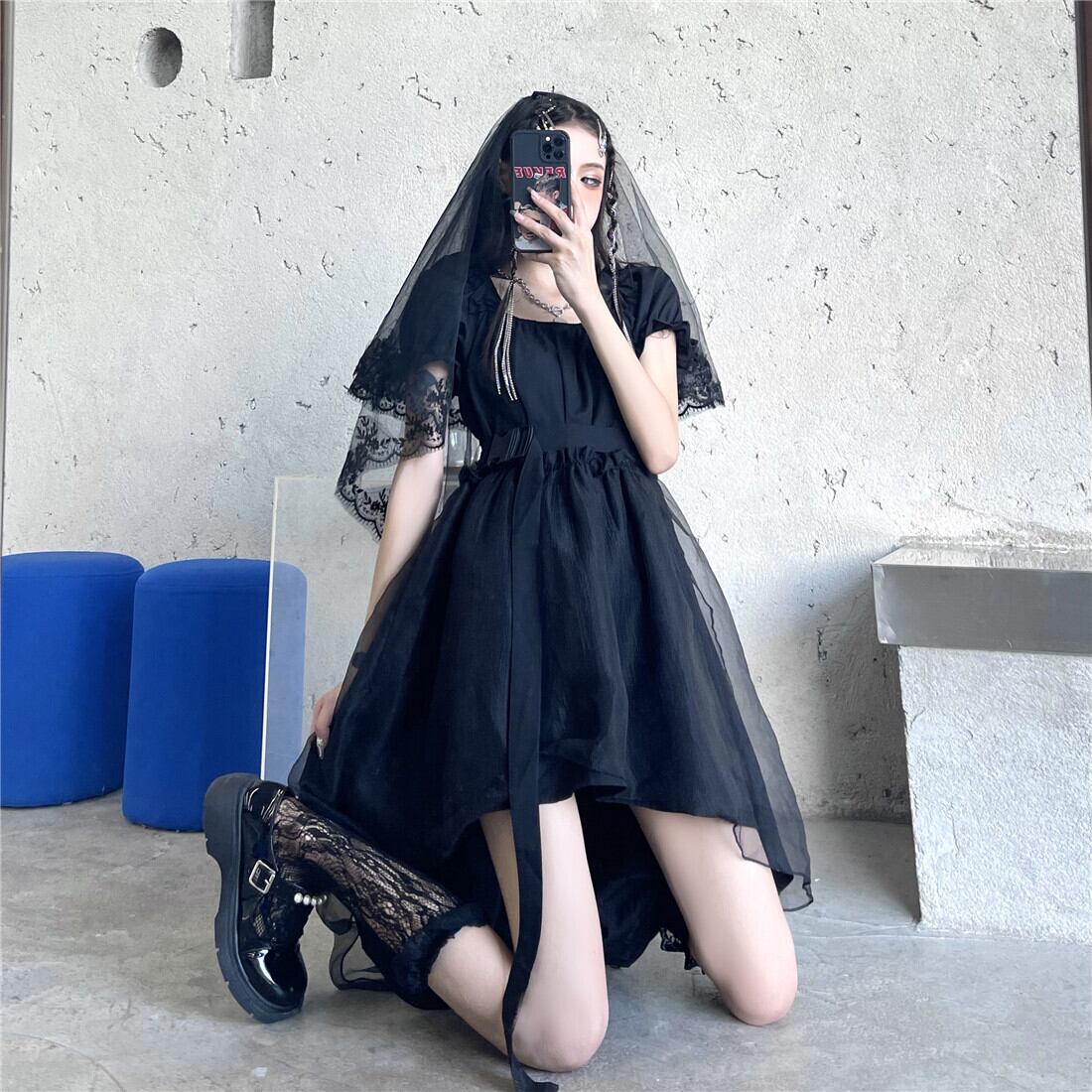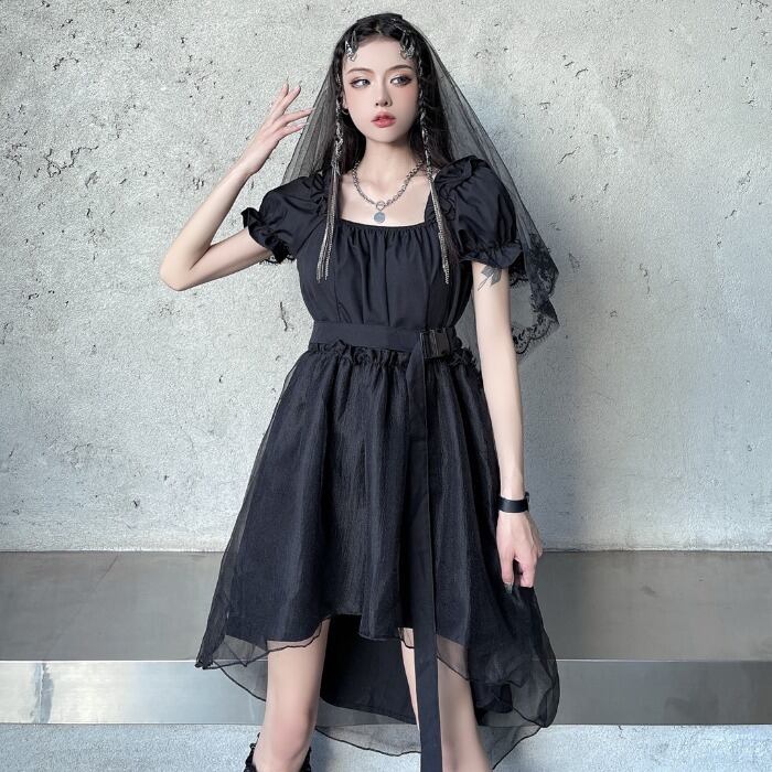 夏服韓国ファッショントレンドダークブラックカラーワンピース 大人ガーリー スウィート キュート カジュアル 夏物 スクウェア スタイル Studios74123965334 | pLegLad Studios
