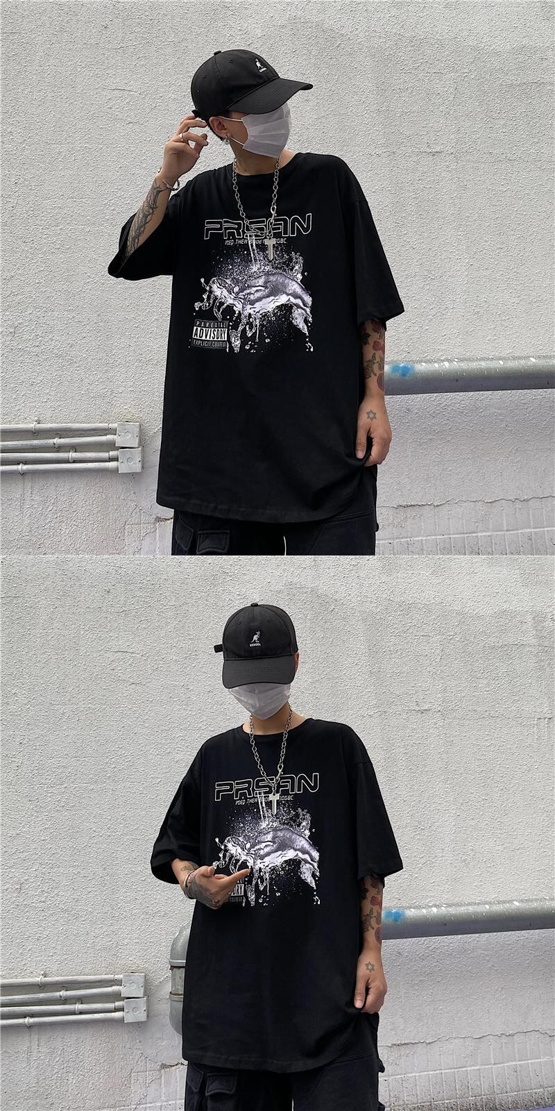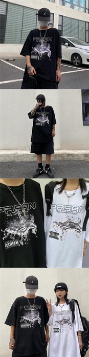 夏服韓国ファッショントレンドスタイルプリントカジュアルルーズラウンドネックTシャツメンズレディース ストリート 原宿 夏物 Oネック Studios37791565792 | pLegLad Studios