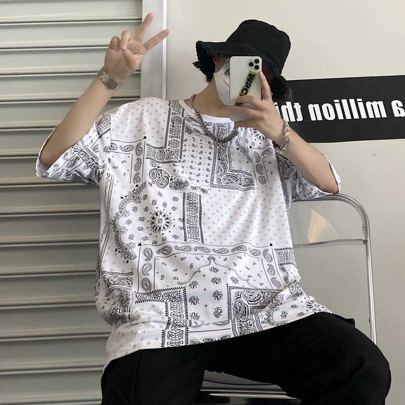 夏服韓国ファッショントレンドスタイルスタンダードFlowerデザイン ルーズカジュアルラウンドネックTシャツレディース レトロ 原宿 夏物 Oネック フラワーデザイン Studios12138052082 | pLegLad Studios