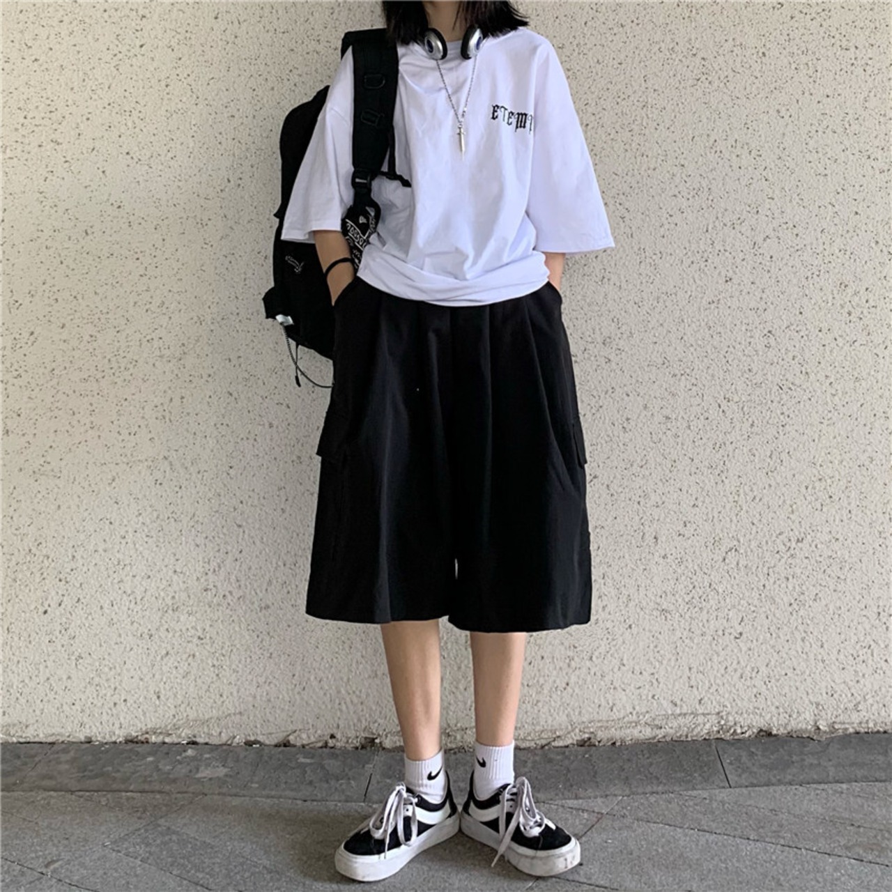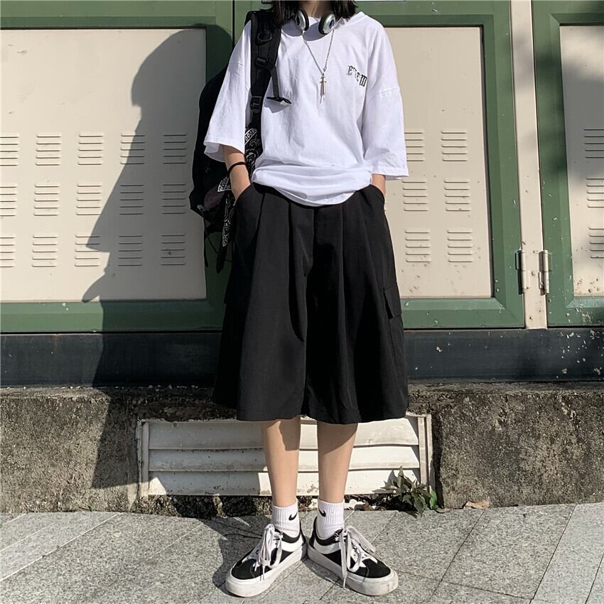 夏服韓国ファッショントレンドスタイルルーズポケットワイドレッグパンツ カジュアルホワイトパンツショーツ レディース 原宿 夏物 ワイドパンツ Studios32784643774 | pLegLad Studios