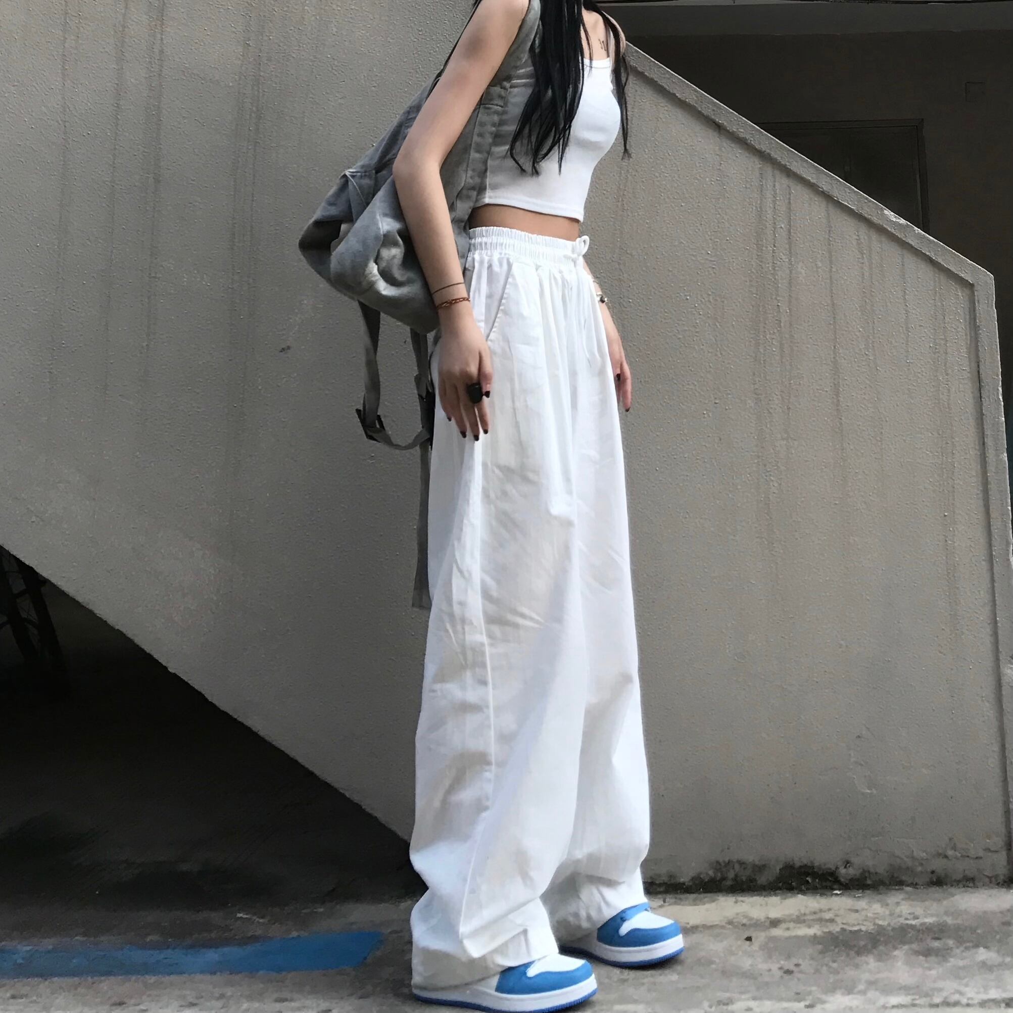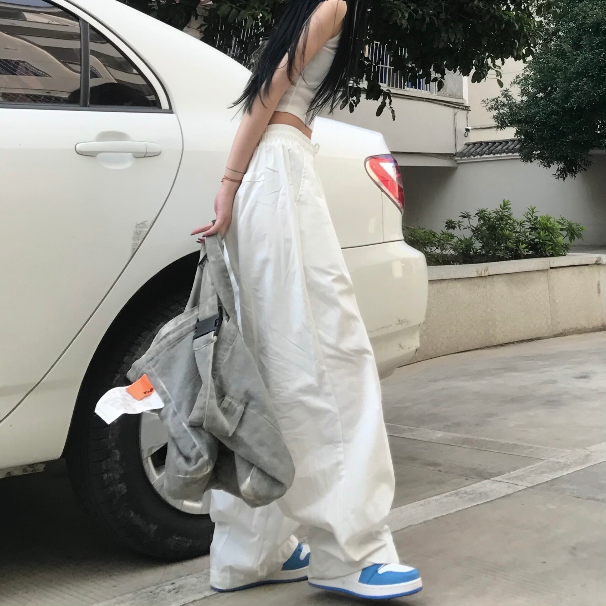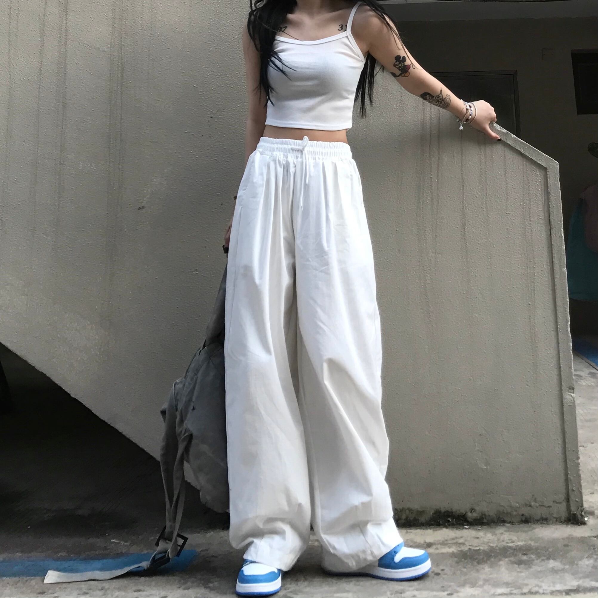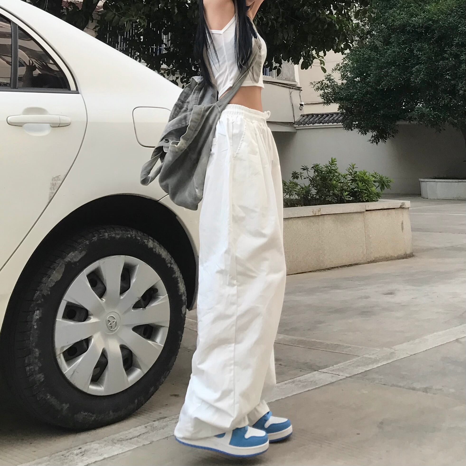 カジュアルパンツ レディース夏服韓国ファッショントレンドスタンダードホワイトルーズハイウェストウェスト薄手ワイドレッグ レトロ ストリート 夏物 ワイドパンツ スタイル ウエスト Studios88946274874 | pLegLad Studios