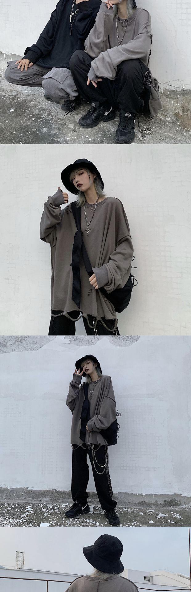 スプリング秋物韓国ファッショントレンドスタイルスタンダードダークブラックルーズラウンドネックTシャツメンズレディース ロング レトロ ストリート 原宿 春物 オータム Oネック 長袖 Studios76754703798 | pLegLad Studios