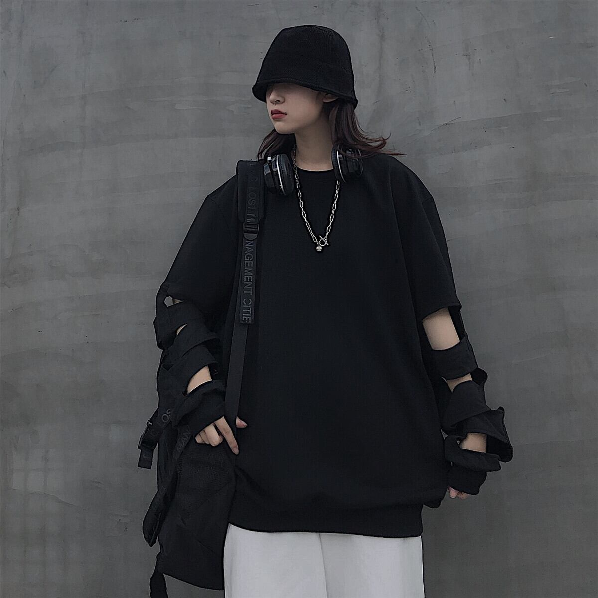 秋物韓国ファッショントレンドスタイルソリッド カラールーズTシャツトップス レディース ロング ストリート 原宿 オータム ソリッドカラー 長袖 Studios14716992335 | pLegLad Studios