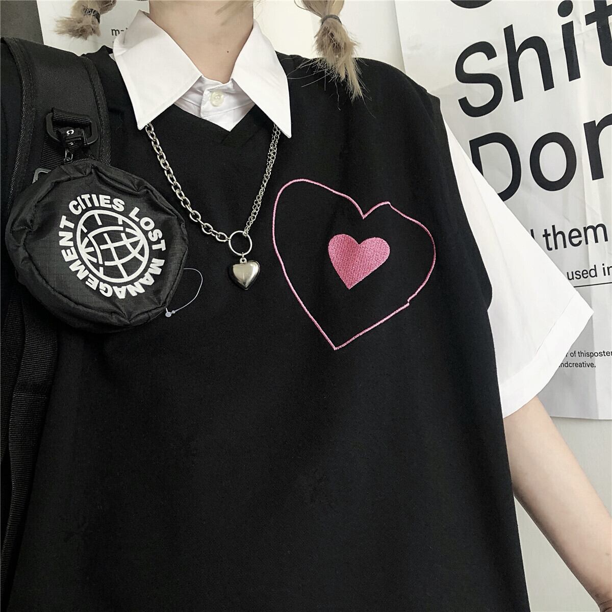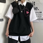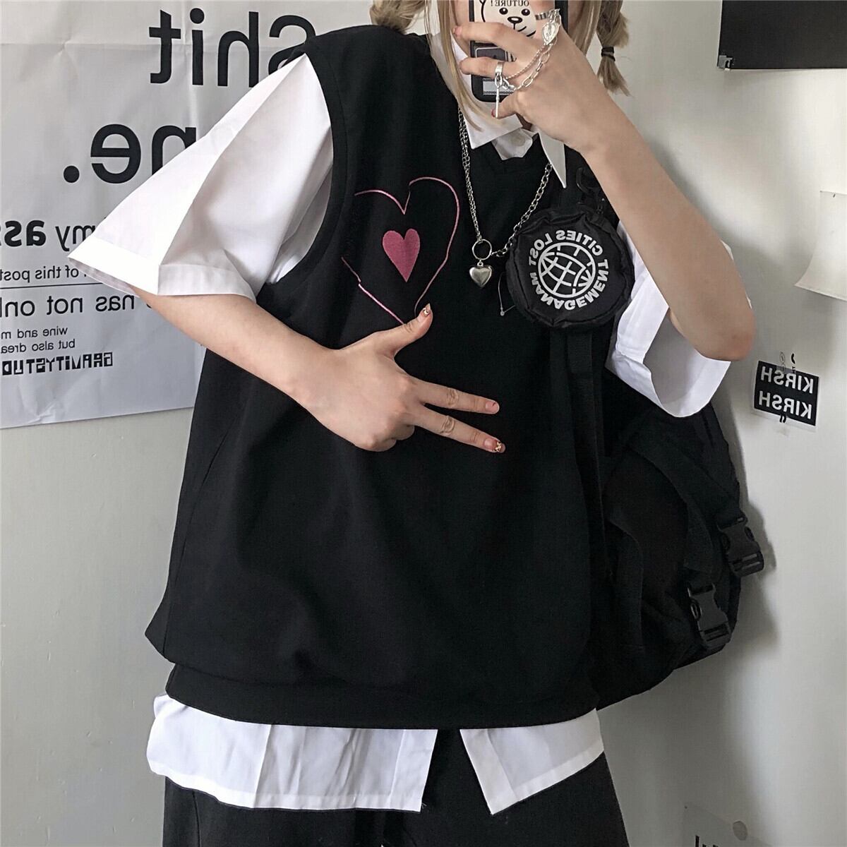 ジャケット レディース夏服韓国ファッショントレンドスタンダードプリントルーズブラックノースリーブTシャツ レトロ 夏物 スタイル Studios19551952630 | pLegLad Studios