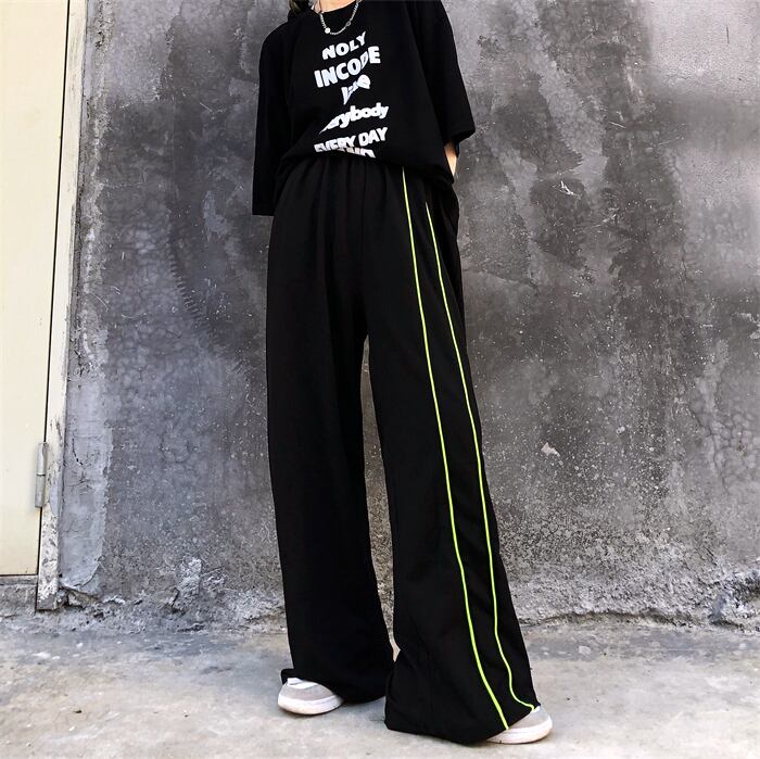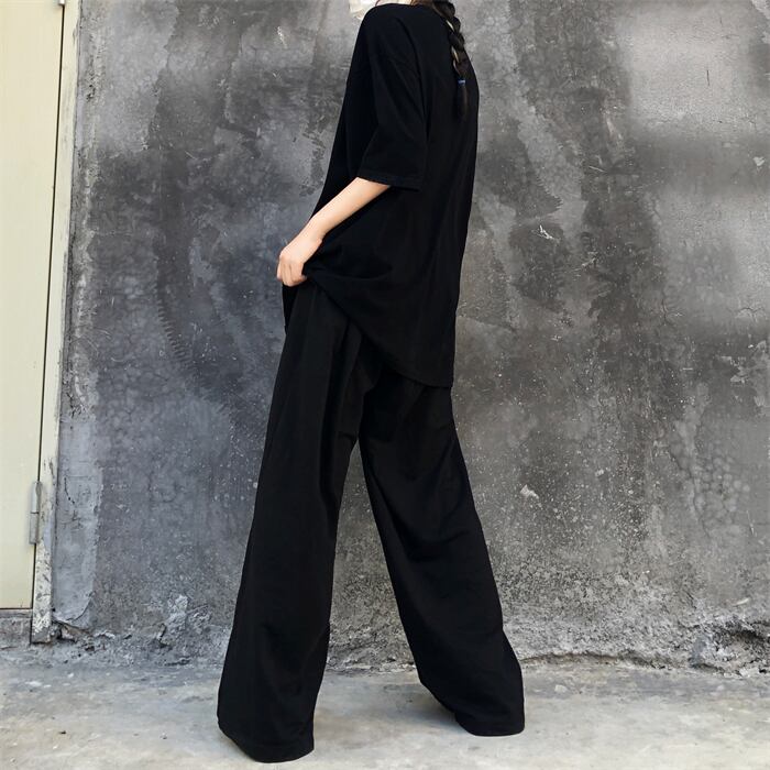 ワイドレッグカジュアルパンツ レディース夏服韓国ファッショントレンドブラックハイウェストウェストルーズ 夏物 ワイドパンツ スタイル ウエスト Studios36842717124 | pLegLad Studios