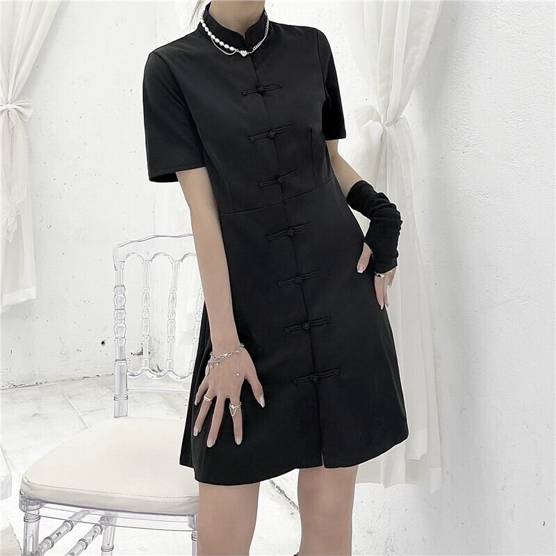 ブラックスカート レディース夏服韓国ファッショントレンドスタイルスタンダードダークスタンドカラーカラーハイウェストウェストAラインワンピース レトロ 夏物 ウエスト Studios82396055188 | pLegLad Studios