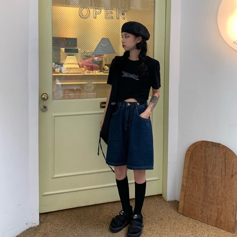 ショーツ レディース夏服韓国ファッショントレンドスタンダードダークルーズハイウェストウェストパンツ レトロ ストリート 夏物 スタイル ウエスト Studios47594883274 | pLegLad Studios