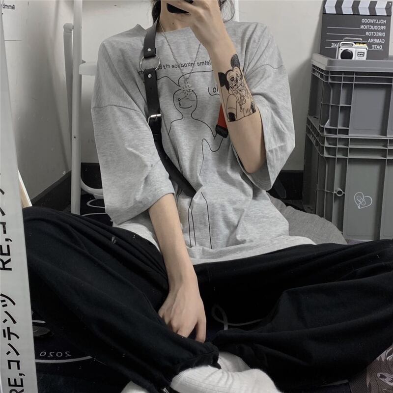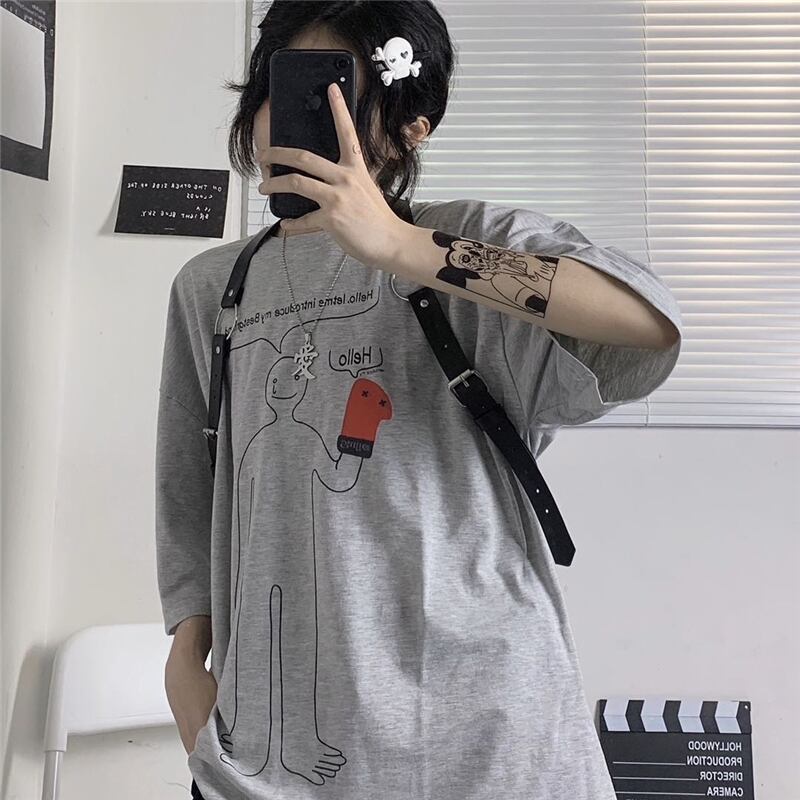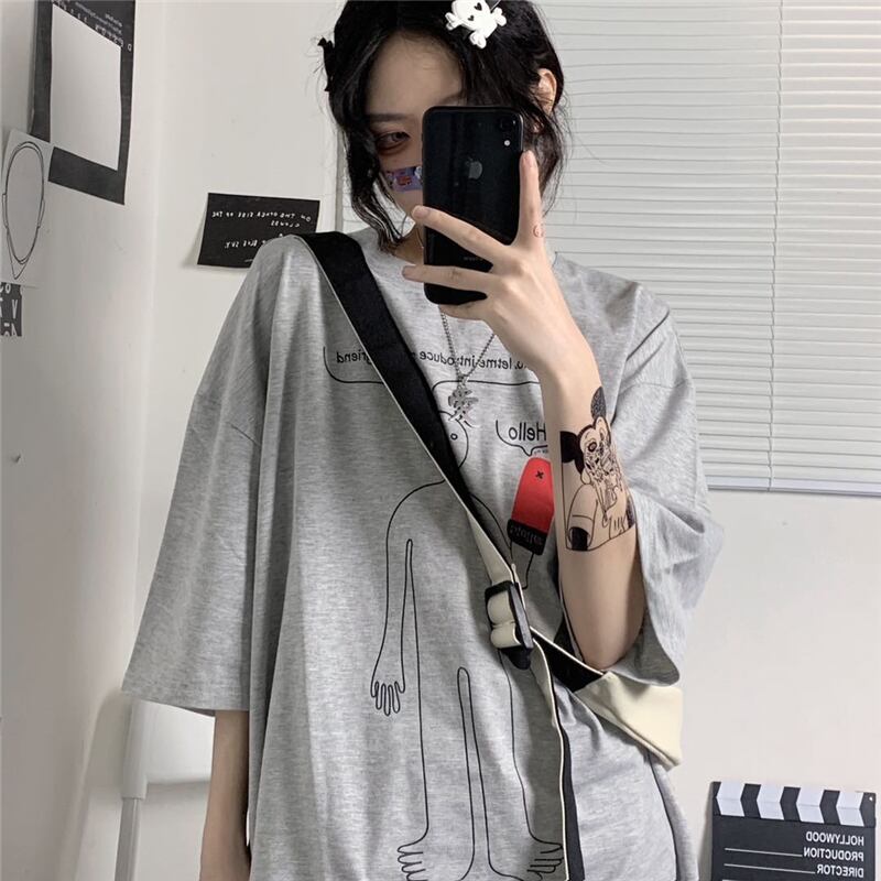 夏服韓国ファッショントレンドスタンダードプリントルーズラウンドネックTシャツレディース レトロ ストリート 夏物 Oネック スタイル Studios34920095265 | pLegLad Studios