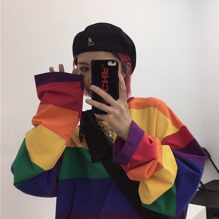 韓国ファッショントレンドスタイルスタンダードストライプトップス ルーズゆったりシャツ Tシャツレディース ロング レトロ 原宿 長袖 Studios9623233905 | pLegLad Studios