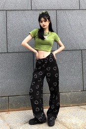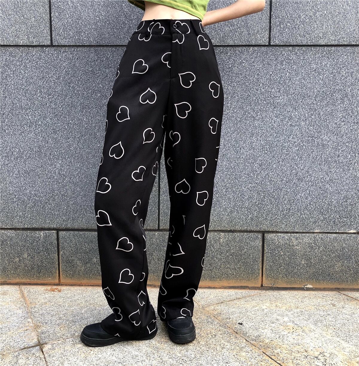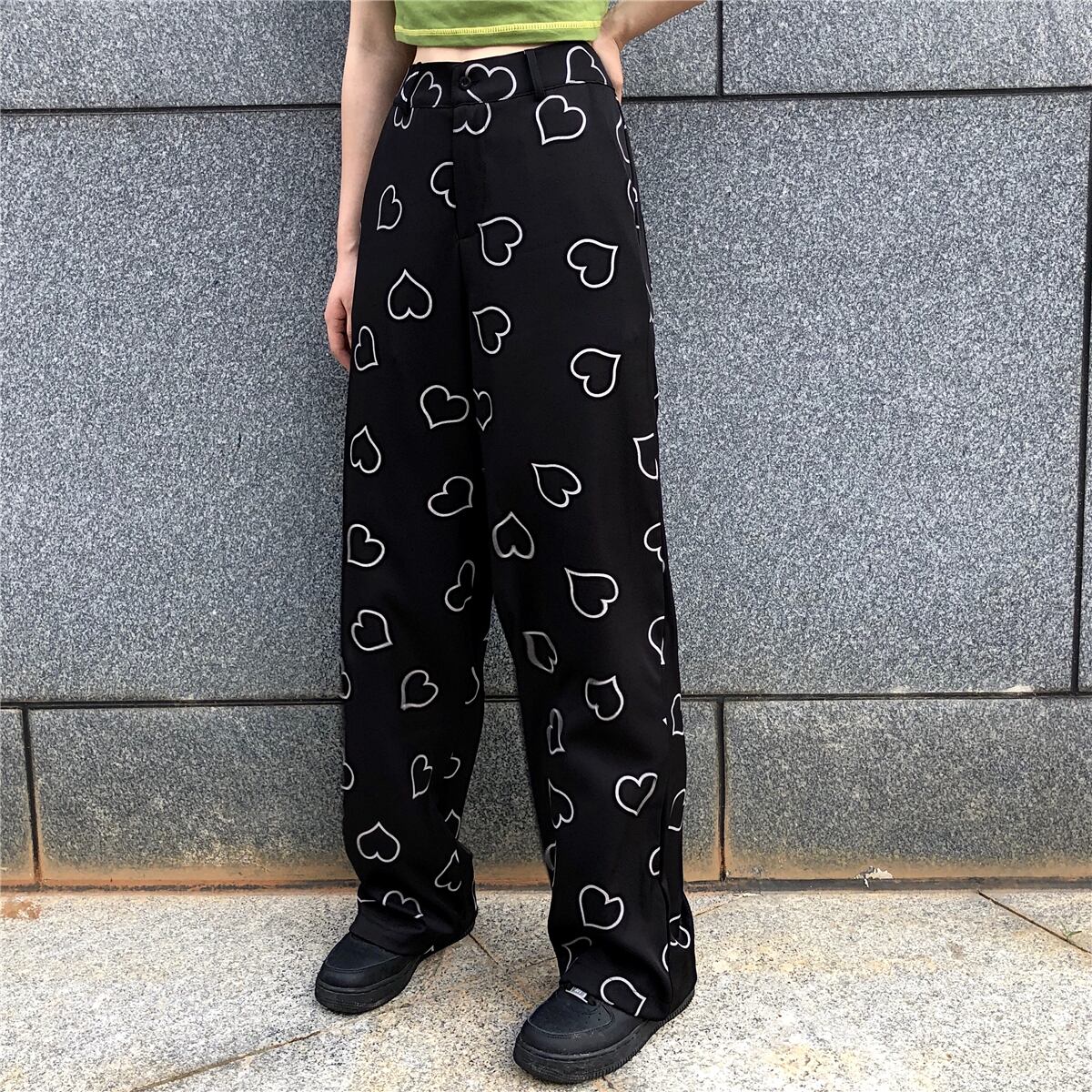 ワイドレッグカジュアルパンツ レディース夏服韓国ファッショントレンドスタンダードプリントルーズ薄手ハイウェストウェストブラック レトロ 夏物 ワイドパンツ スタイル ウエスト Studios15572146258 | pLegLad Studios
