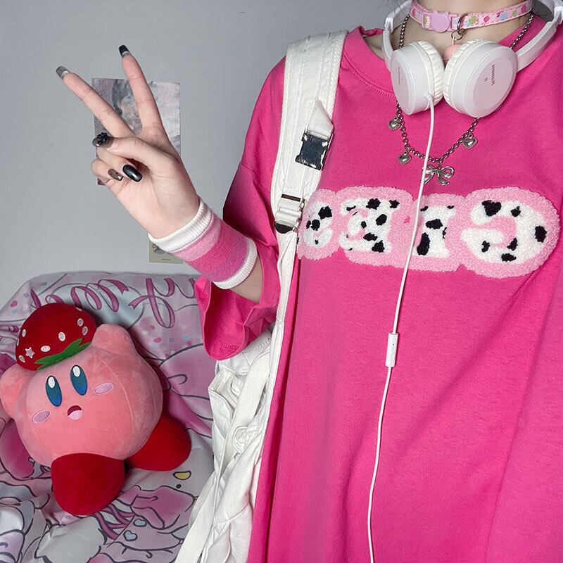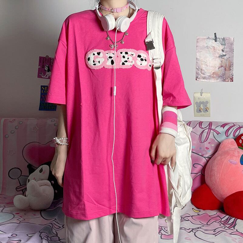 夏服韓国ファッショントレンドスタイル刺繍ルーズカジュアルラウンドネックTシャツレディース ピンク ストリート 原宿 夏物 Oネック Studios68176888771 | pLegLad Studios