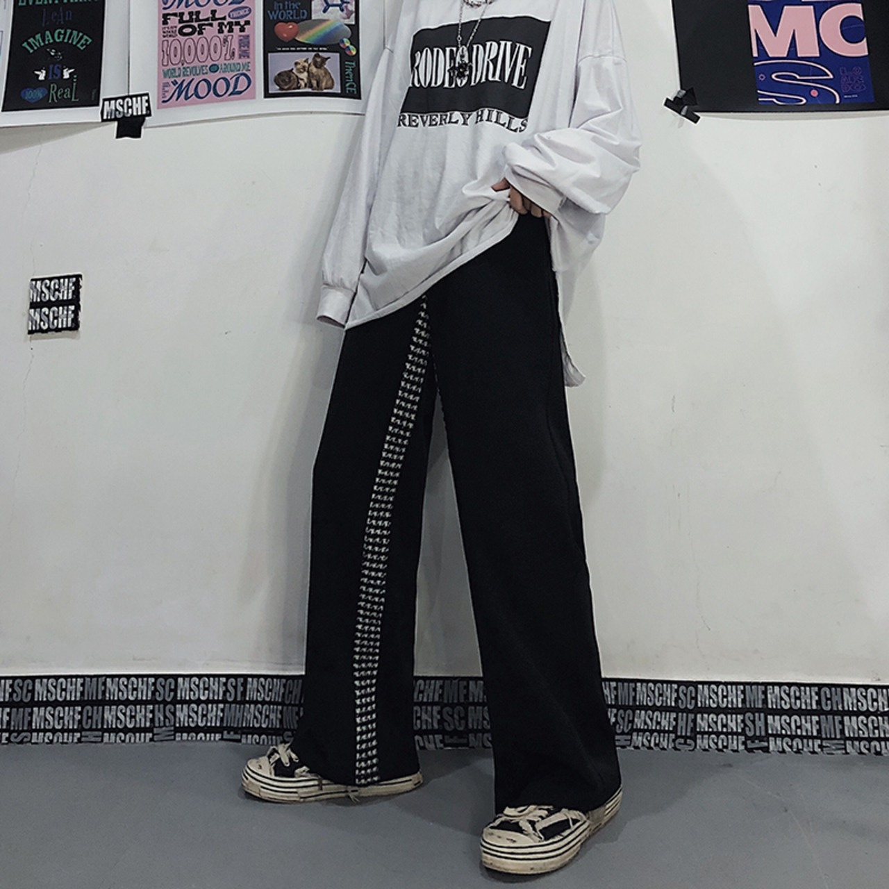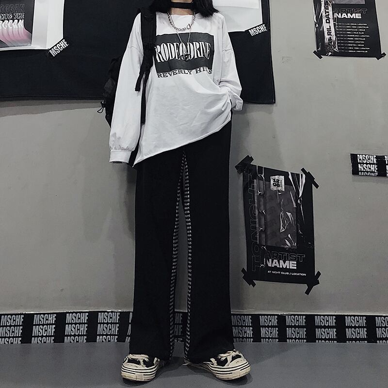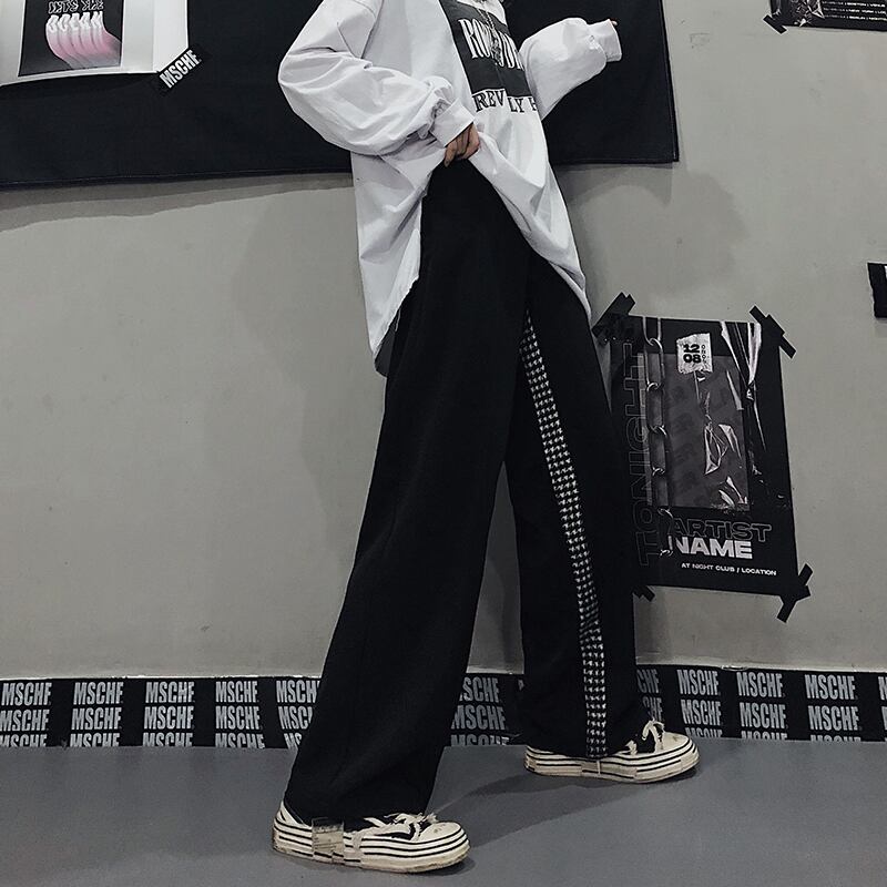 カジュアルパンツ レディース韓国ファッショントレンドハイウェストウェスト薄手ルーズワイドレッグ ストリート ワイドパンツ ステッチ スタイル ウエスト Studios96777117230 | pLegLad Studios