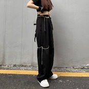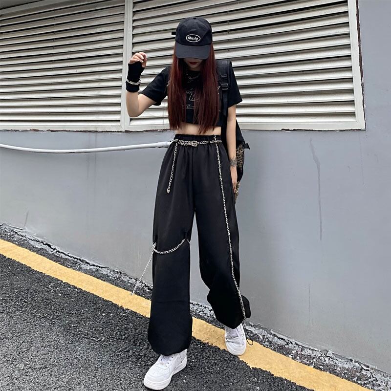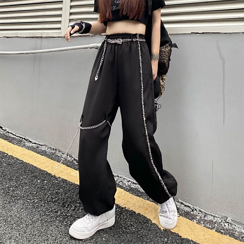 ワイドレッグ夏服韓国ファッショントレンドスタイルチェーン ハイウェストウェスト薄手ルーズカジュアルパンツ ストリート 原宿 夏物 ワイドパンツ ウエスト Studios11478182917 | pLegLad Studios