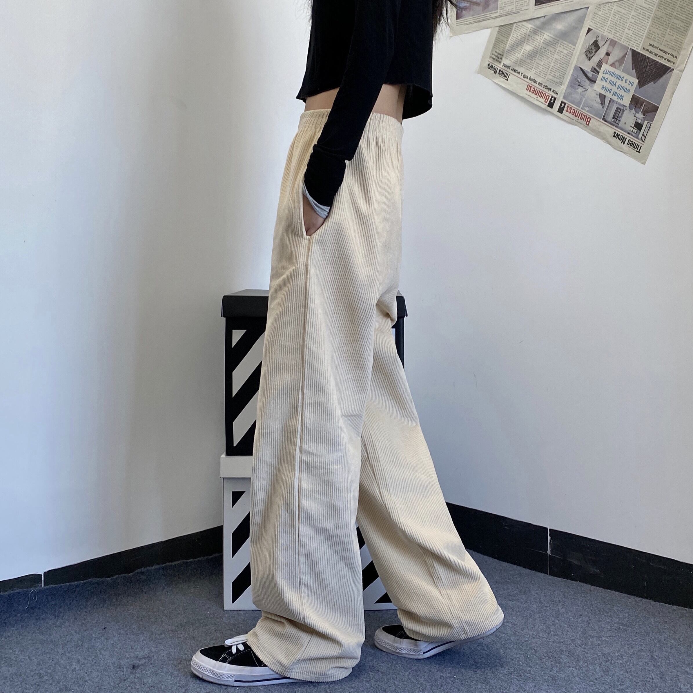 コーデュロイカジュアルパンツ レディース夏服韓国ファッショントレンドスタンダードソリッド カラールーズ薄手ワイドレッグ レトロ 夏物 ワイドパンツ ソリッドカラー スタイル Studios62301677709 | pLegLad Studios