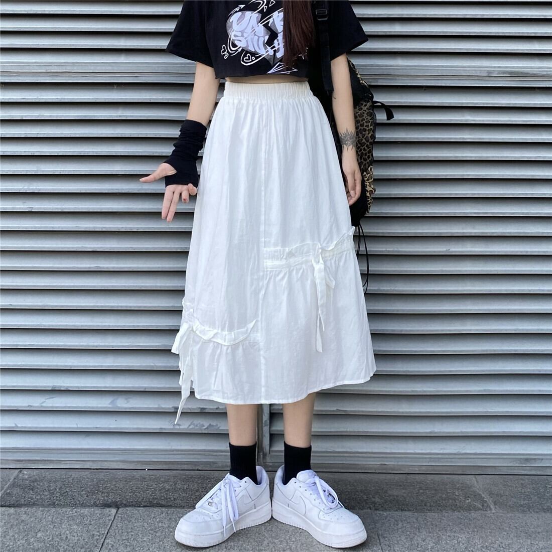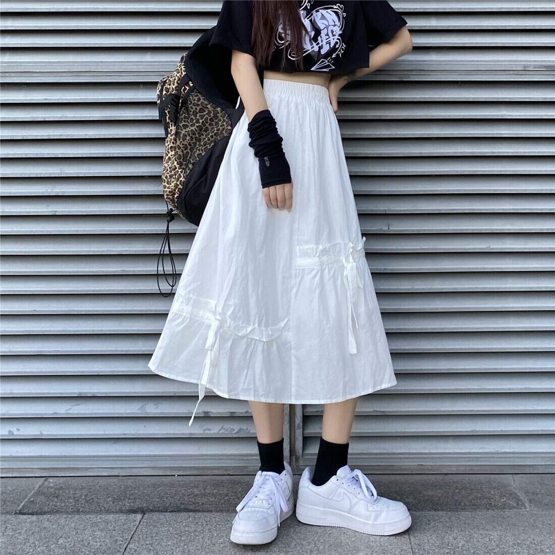 ホワイトスカート レディース夏服韓国ファッショントレンドスタンダードリボンハイウェストウェスト薄手Aライン レトロ 夏物 スタイル ウエスト ミドル丈 Studios96941276799 | pLegLad Studios