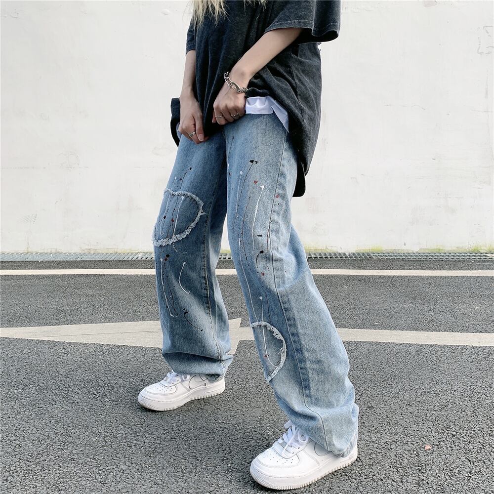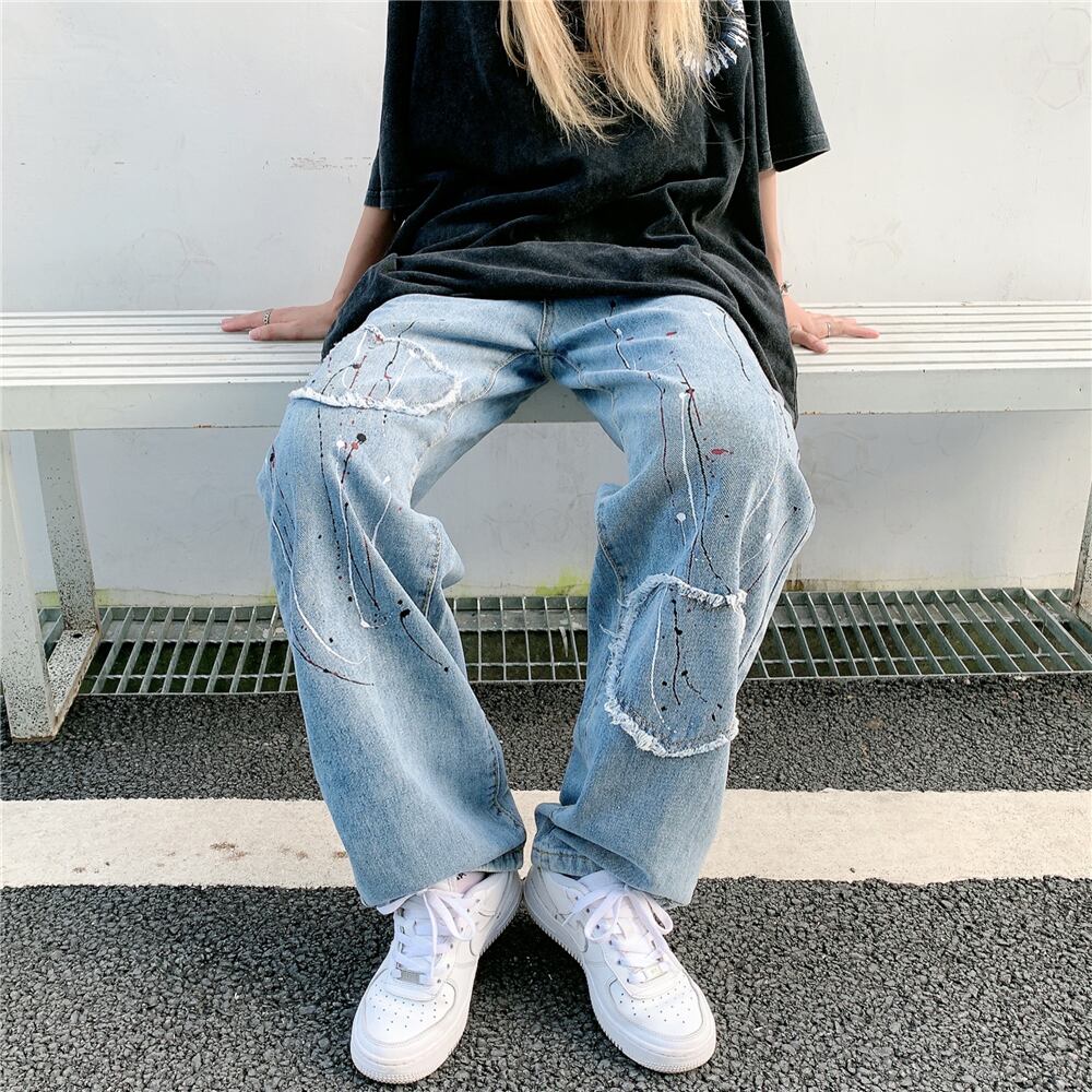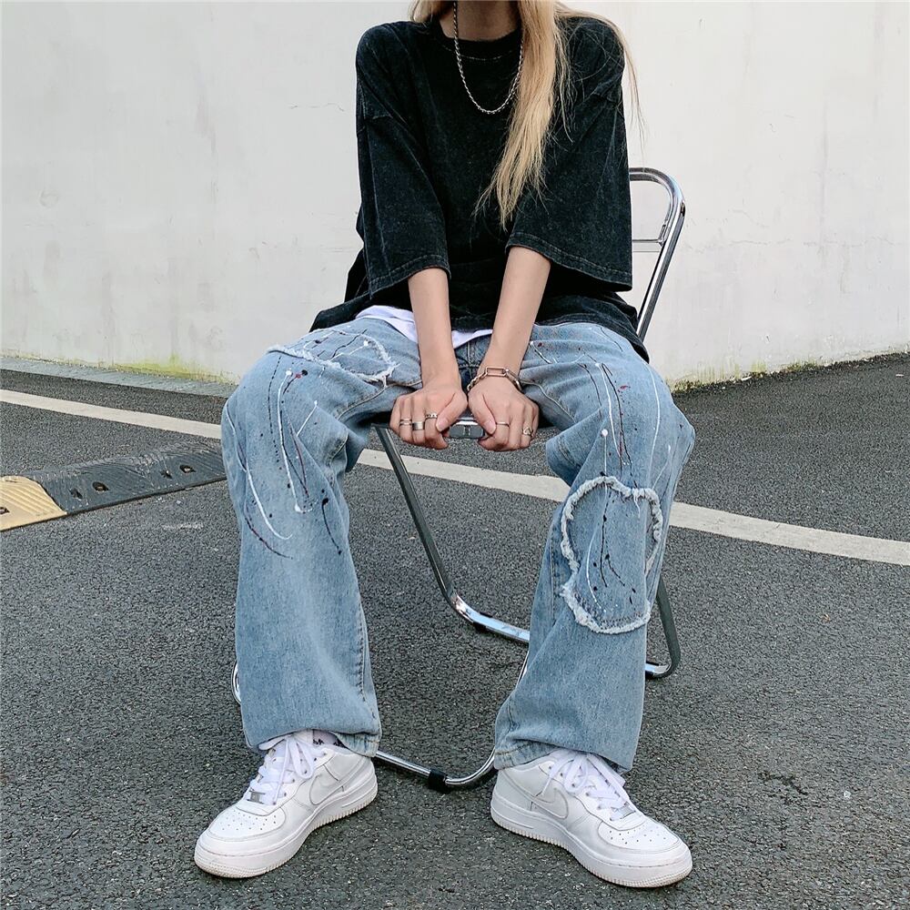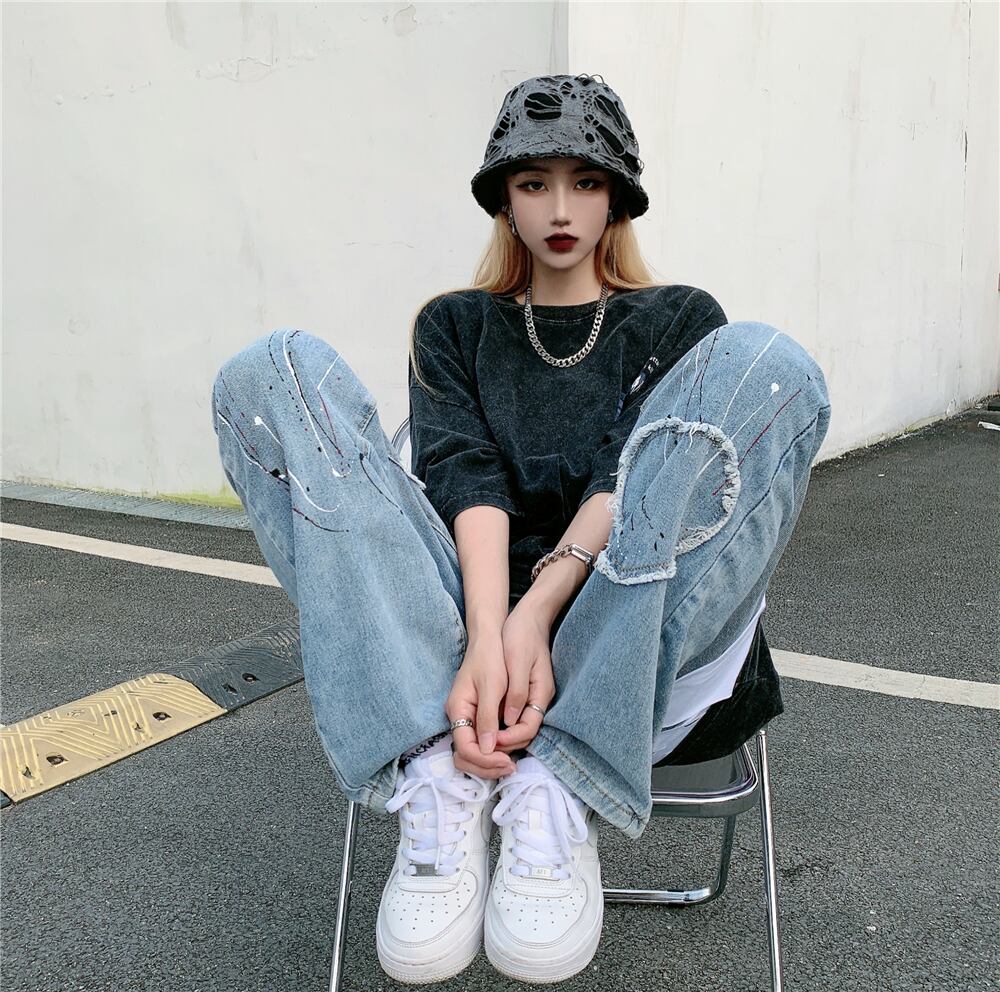 ジーンズ レディース韓国ファッショントレンドカラールーズハイウェストウェスト薄手ワイドレッグパンツ ワイドパンツ スタイル ウエスト Studios88879784181 | pLegLad Studios