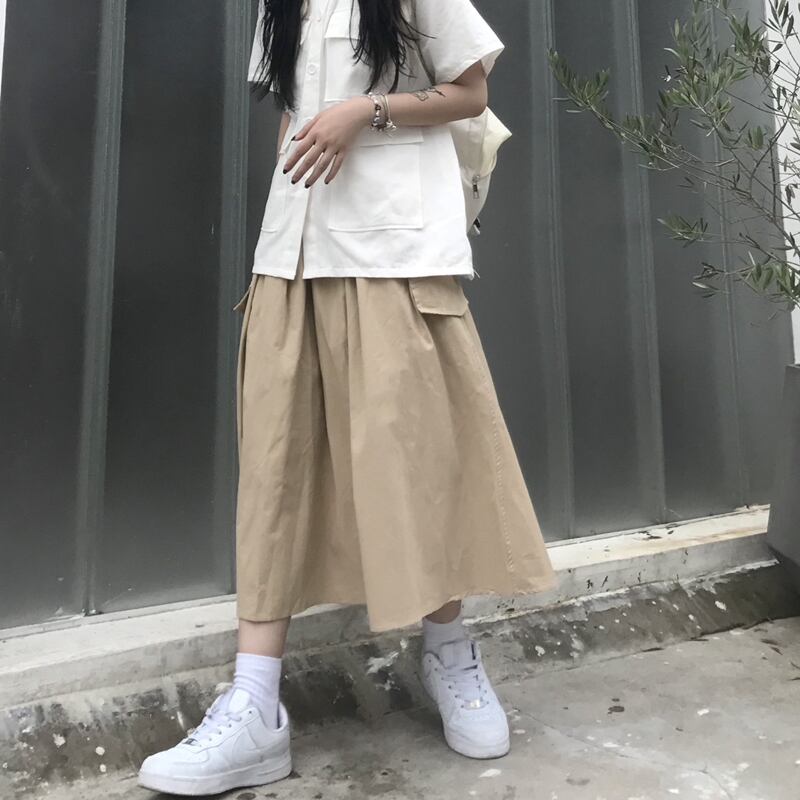 スカート レディース夏服韓国ファッショントレンドスタンダードハイウェストウェスト薄手Aライン レトロ 夏物 ボーイズ スタイル ウエスト Studios45931444302 | pLegLad Studios
