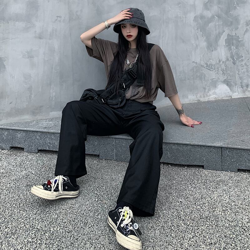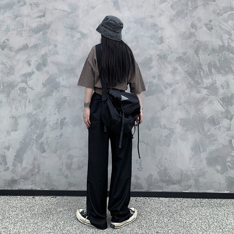 パンツ レディース夏服韓国ファッションブラックルーズハイウェストウェストワイドレッグ 夏物 ワイドパンツ スタイル ウエスト コーデ モノクロ Studio49676522366 | pLegLad Studios